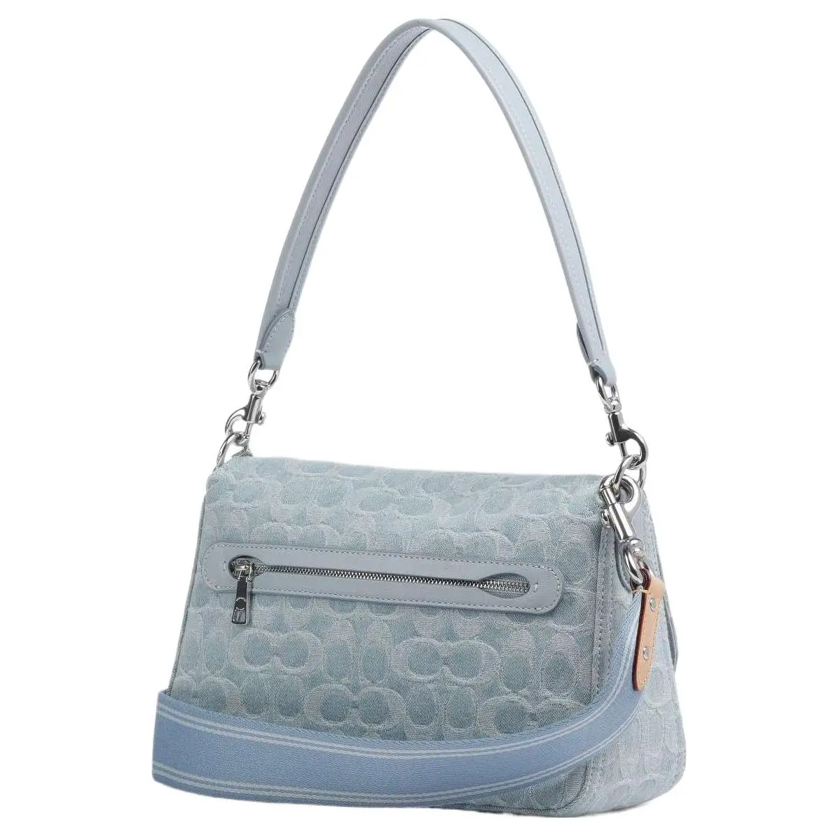 ·Iconic silver-tone “COACH” logo debossed on front flap