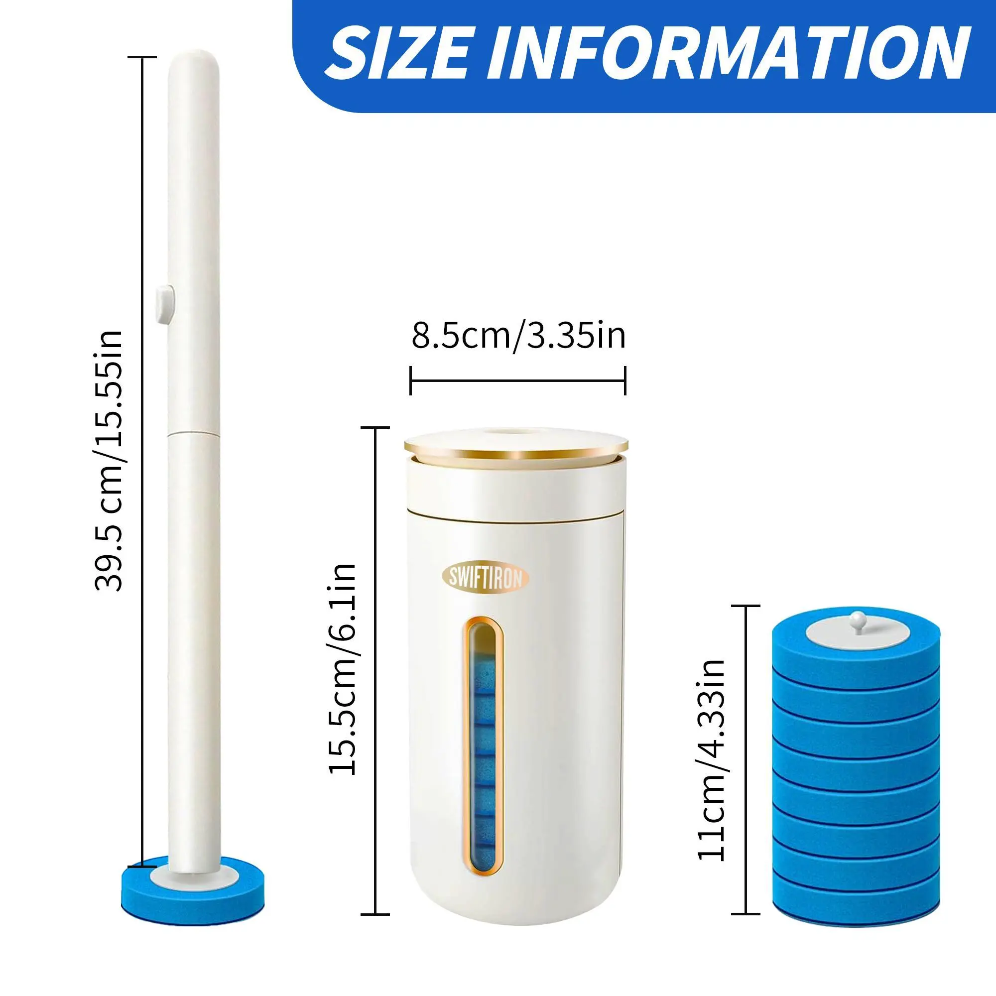 The 3-layer sponge pads are shaped to reach the bowl and corners, while the compact holder helps keep the bathroom organized and saves space.