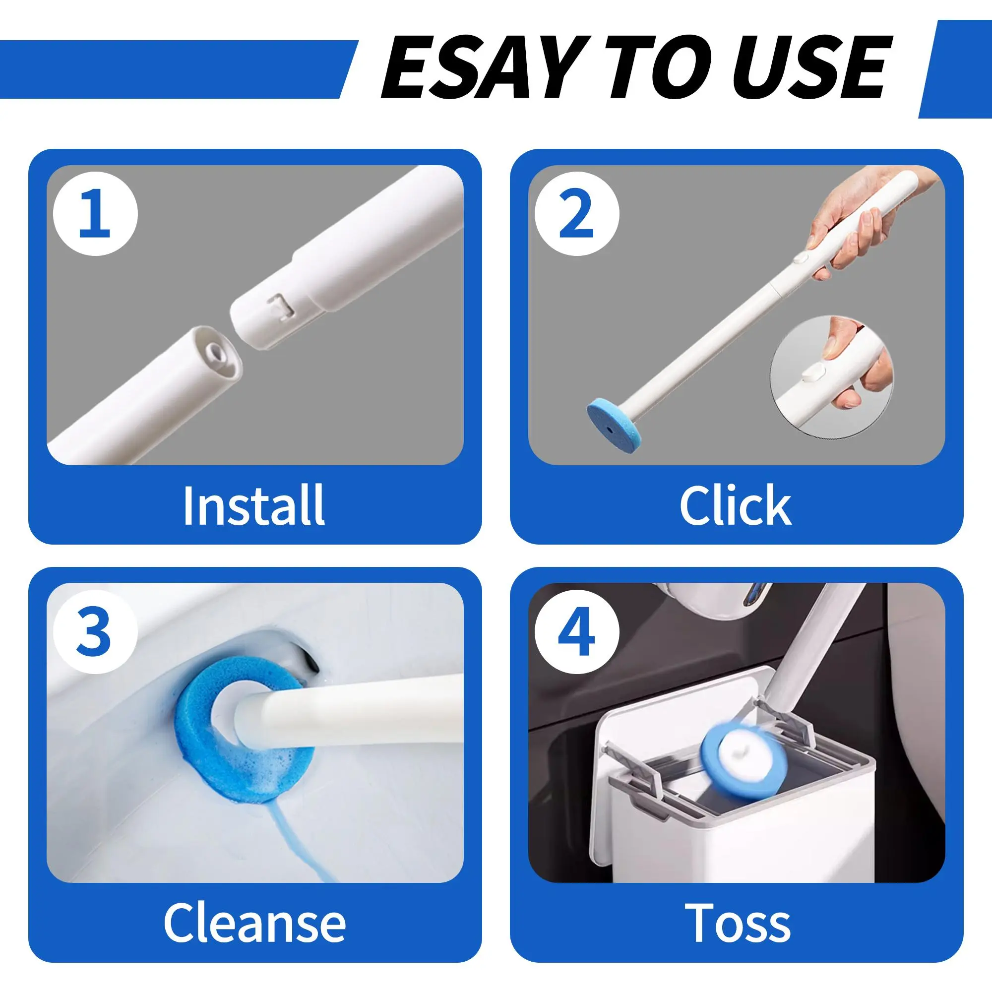 This disposable toilet brush set is designed for convenient bathroom use. It includes a touch-free cleaning wand, 18 foaming sponge refill heads, and a wall-mounted holder with an auto open and close lid. The no-drill design allows easy installation without tools.