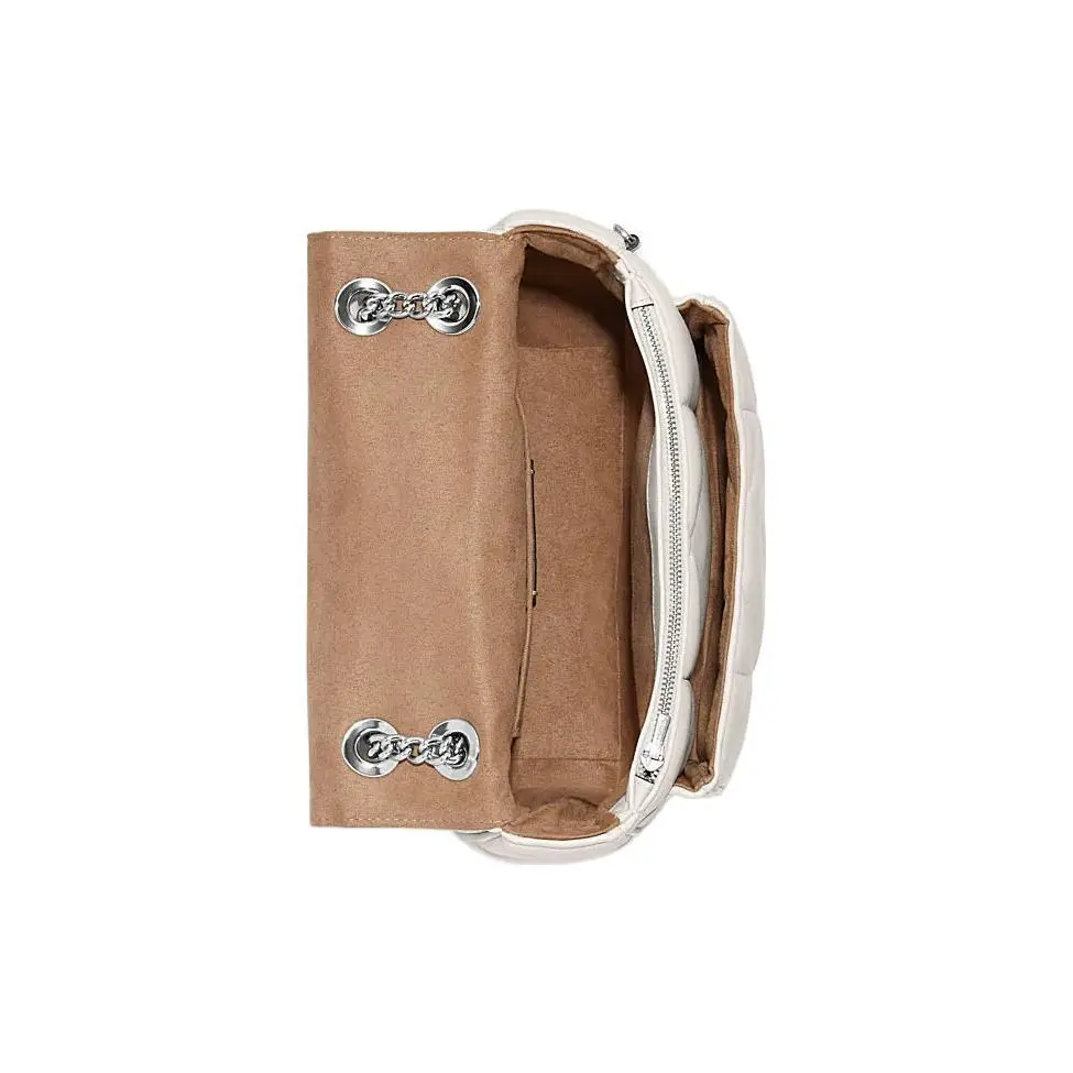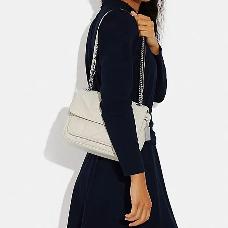 COACH Klare 25 Cloud Tote Bag for Women – Quilted Diamond Logo Flap with Multi-Compartment Closure, Sheep and Cow Leather, White