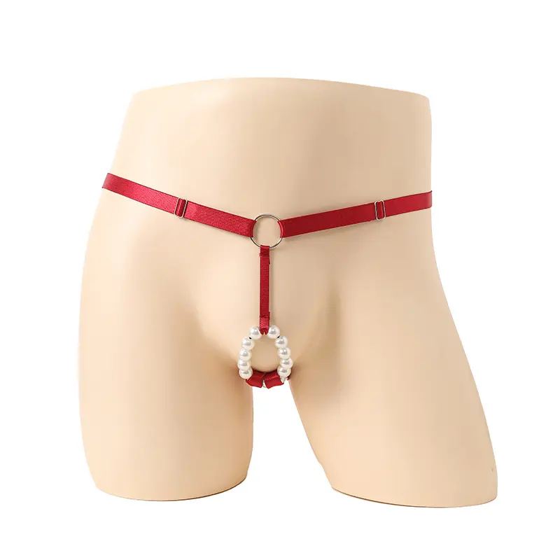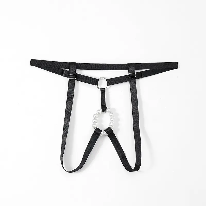 This minimalist strap thong features sleek adjustable bands and a delicate pearl detail that adds just the right touch of elegance to a daring design.