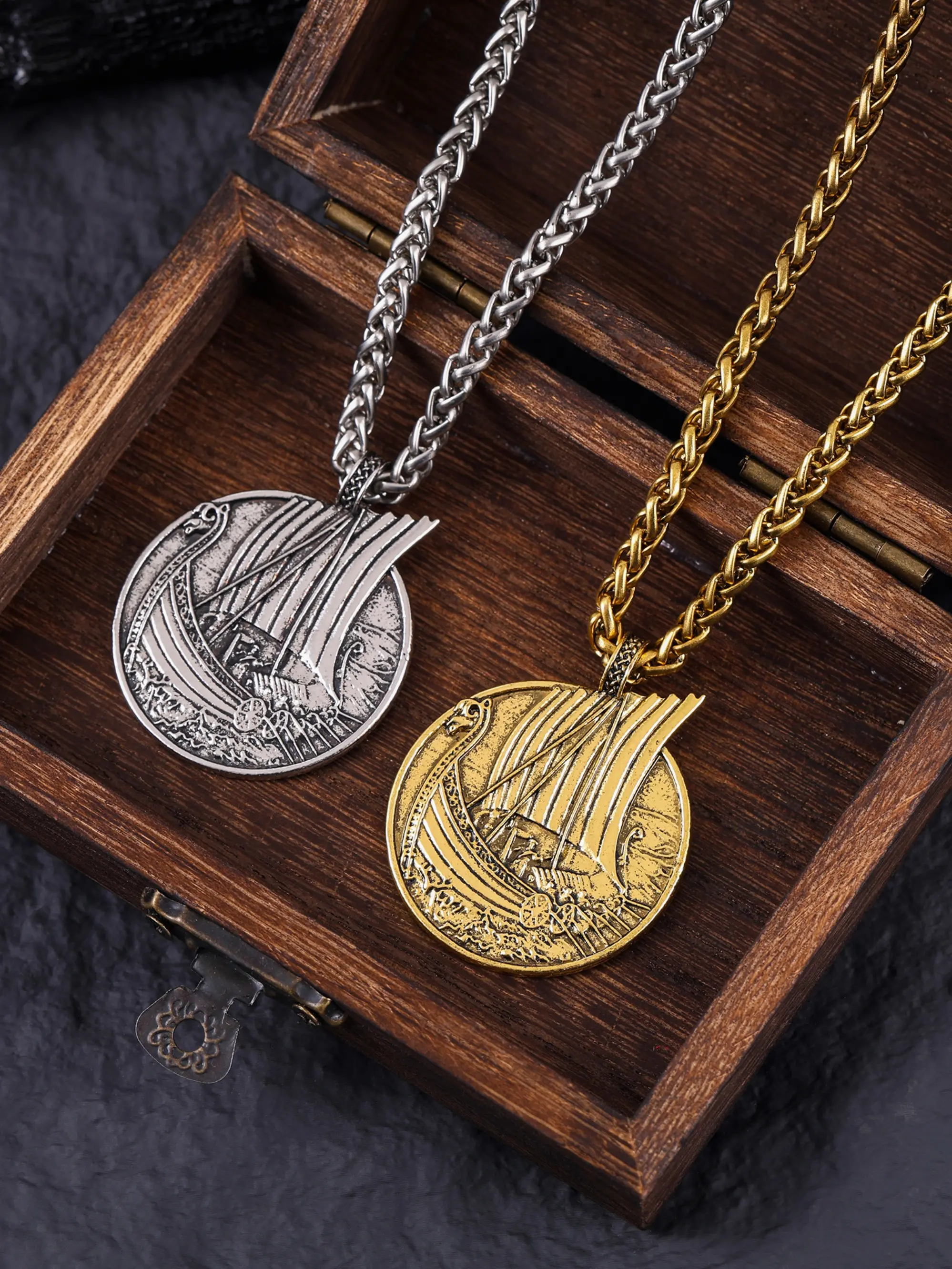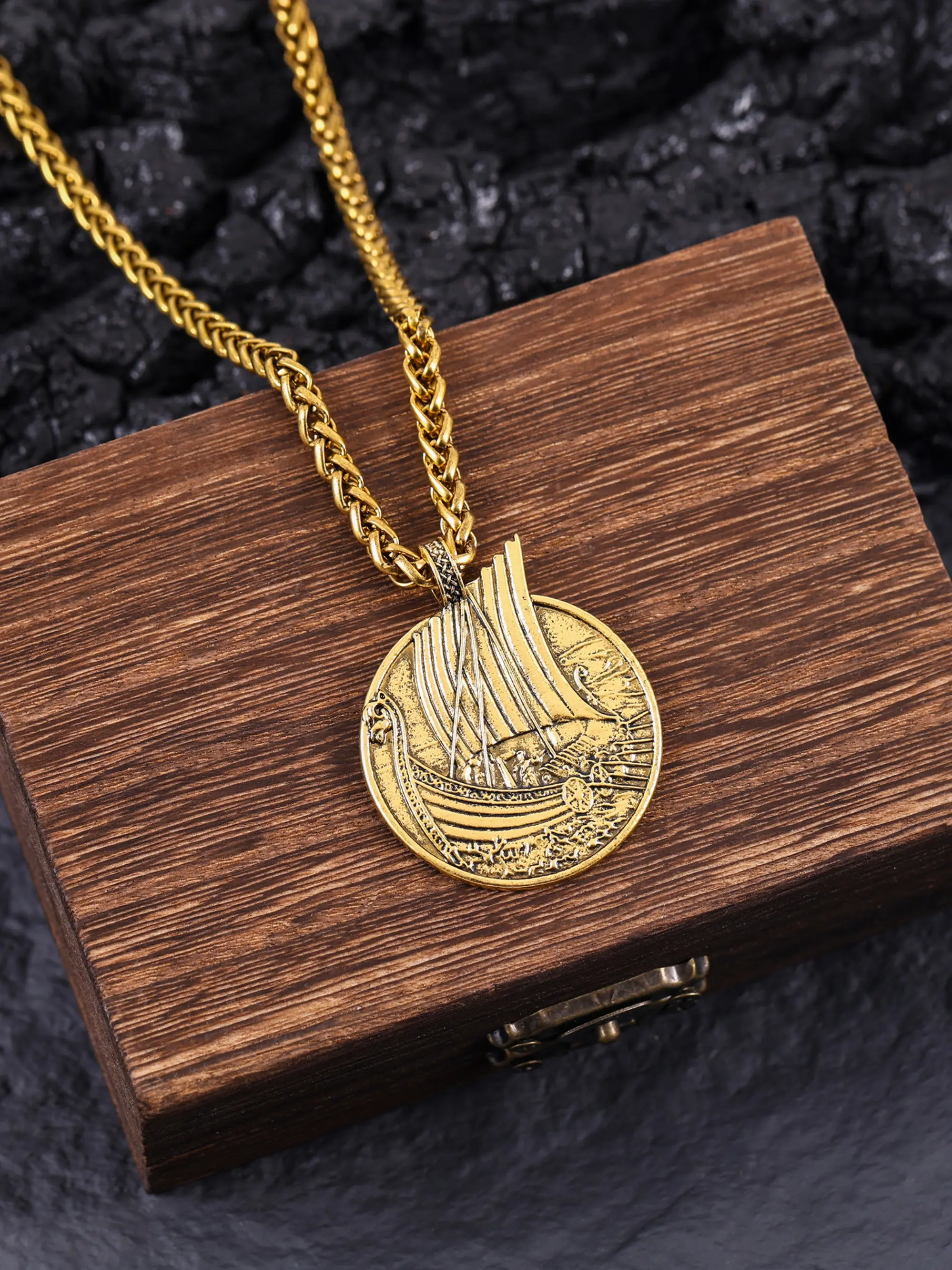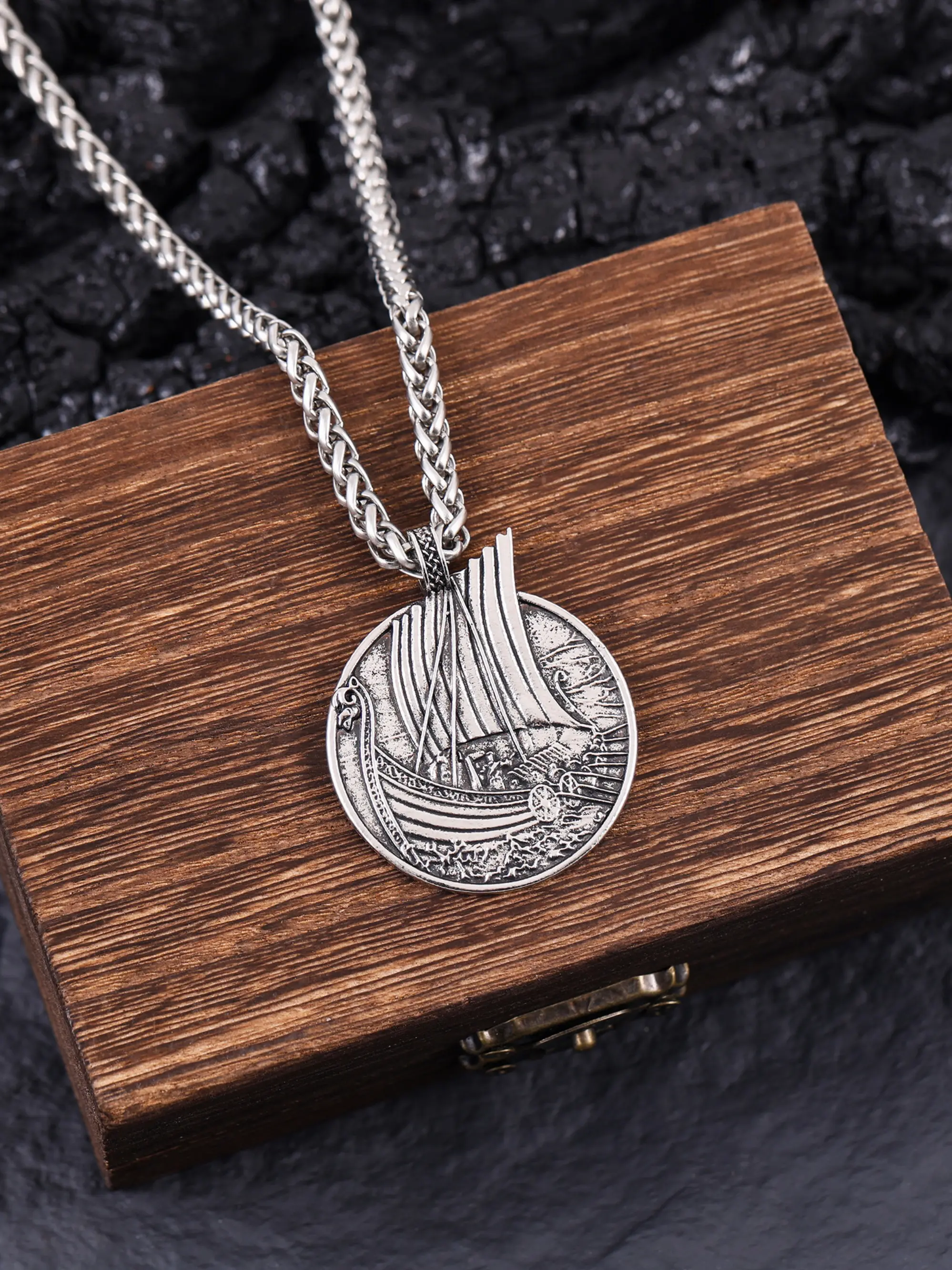 【Viking Theme】: Features a unique pirate ship pendant, perfect for men who love Norse-inspired accessories.