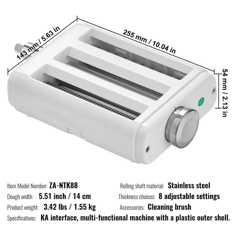 Stainless Steel Pasta Roller Attachment for Stand Mixers, Featuring Adjustable Thickness for Making Spaghetti And Fettuccine