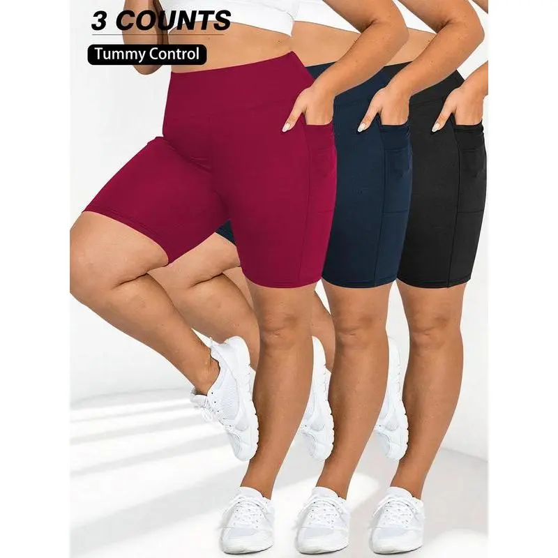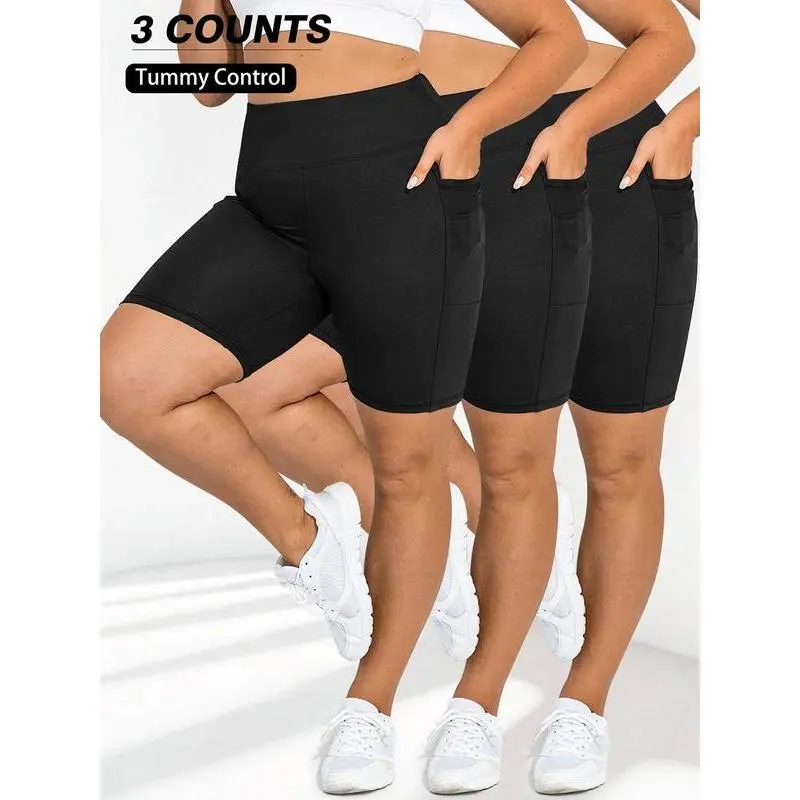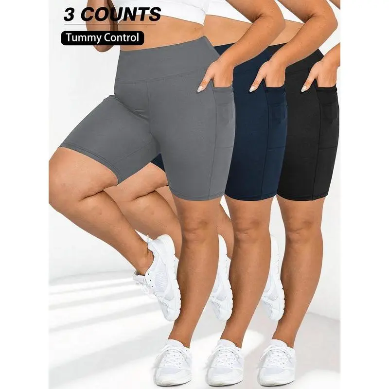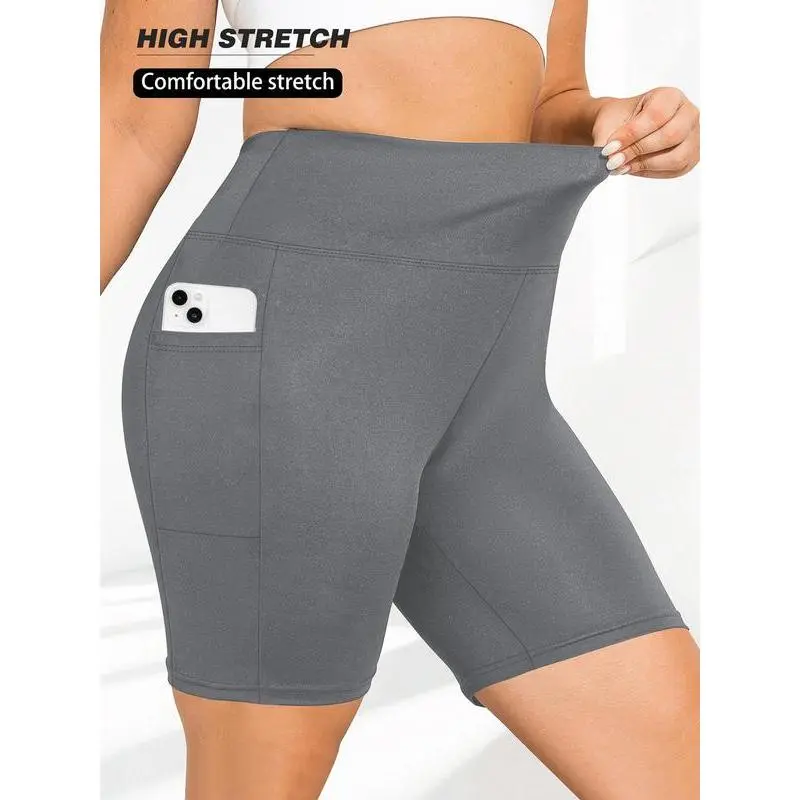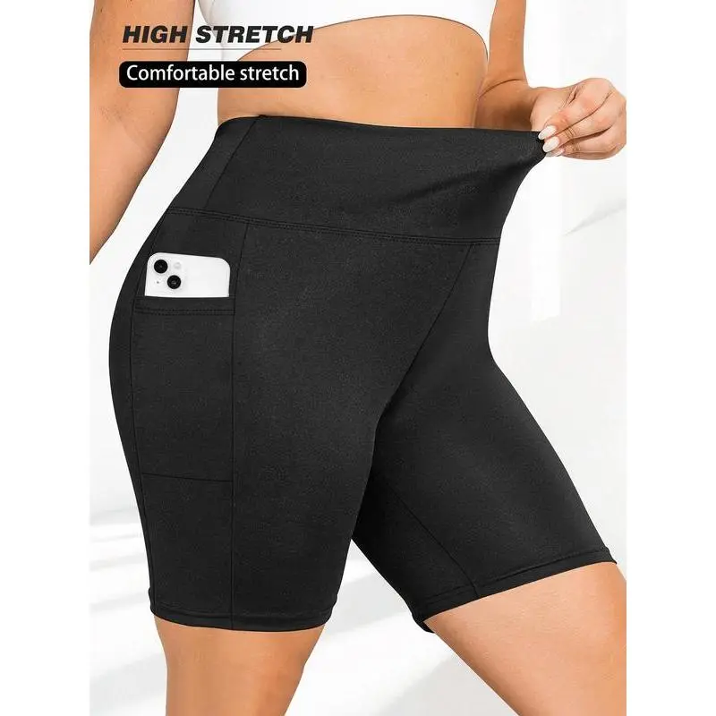 [Plus Size] Solid Pocket High Waist Short Leggings, Casual Comfy Breathable Skinny Shorts for Daily Wear, Workout Clothes, Gymclothes, Women's Bottoms for Summer