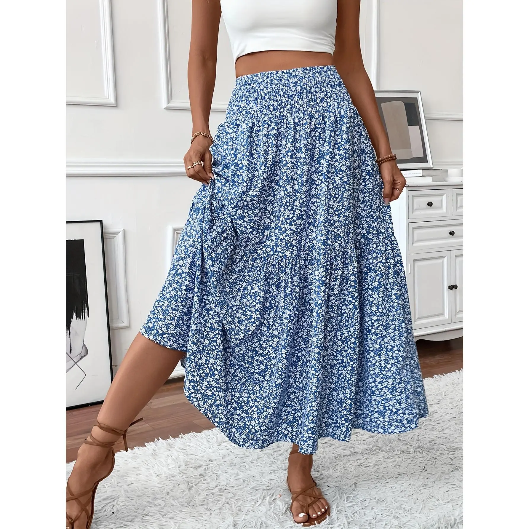 Dokotoo Womenswear Bohemian Summer Dresses 2026 Boho Floral Ruffle Sleeve Smocked Elastic Waist Drawstring Tie Casual Mini Dress Sundress