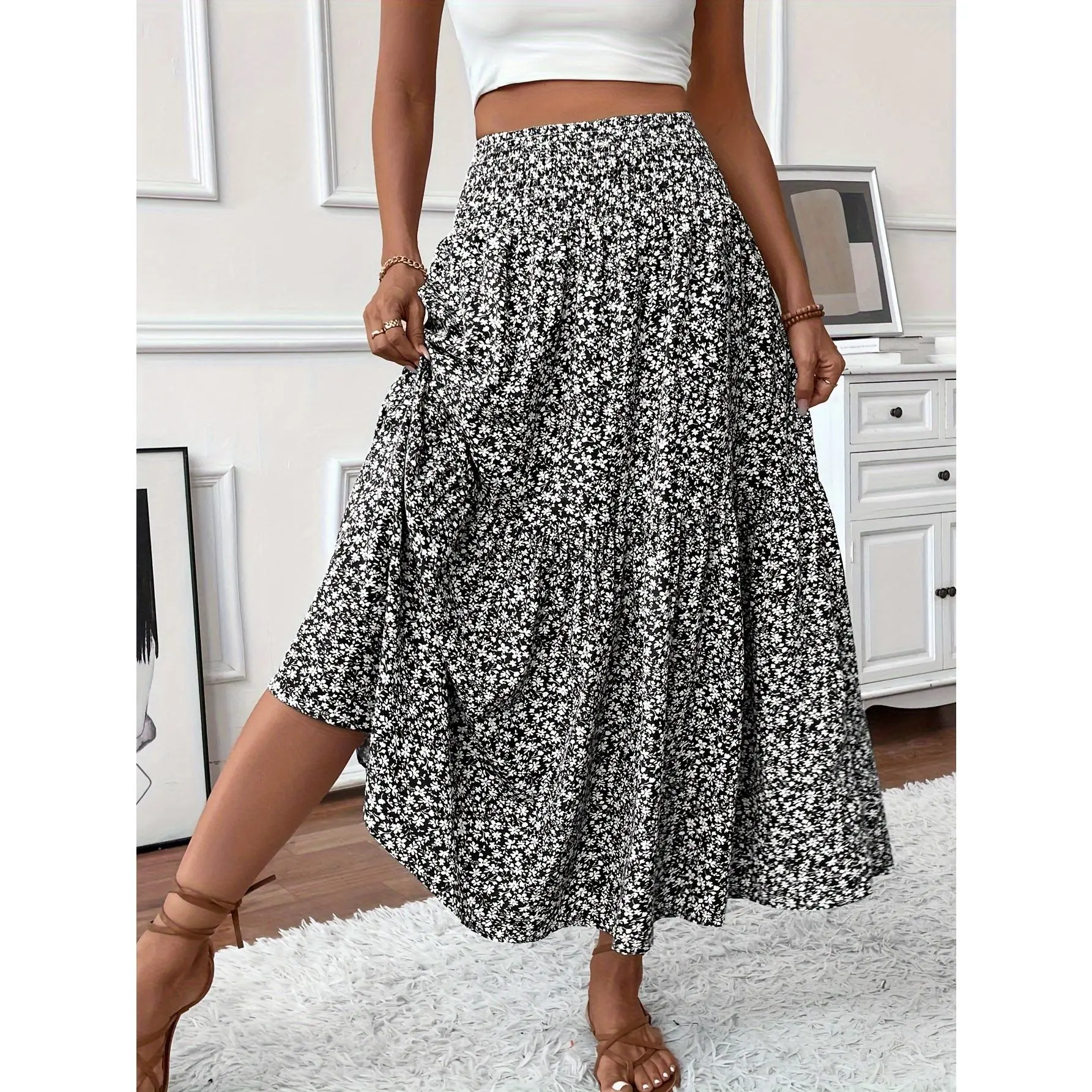 DP 021742 Women's Elastic Waist Skirt - Casual Ditsy Floral, Pocket Detail