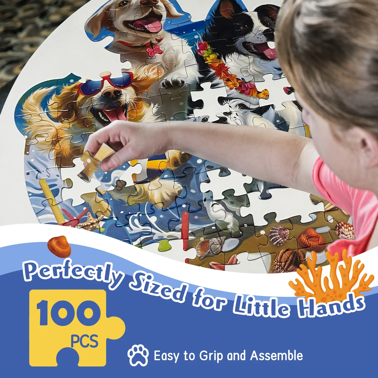 [Magic Toy] Animal Puzzle for Kids, 100-piece round puppy floor puzzle, Perfect Gift for Boys and girls aged 3+