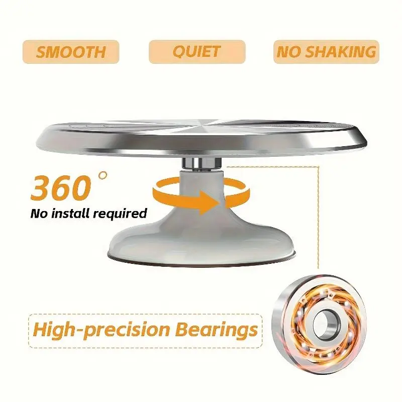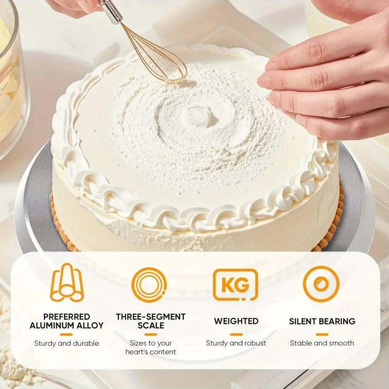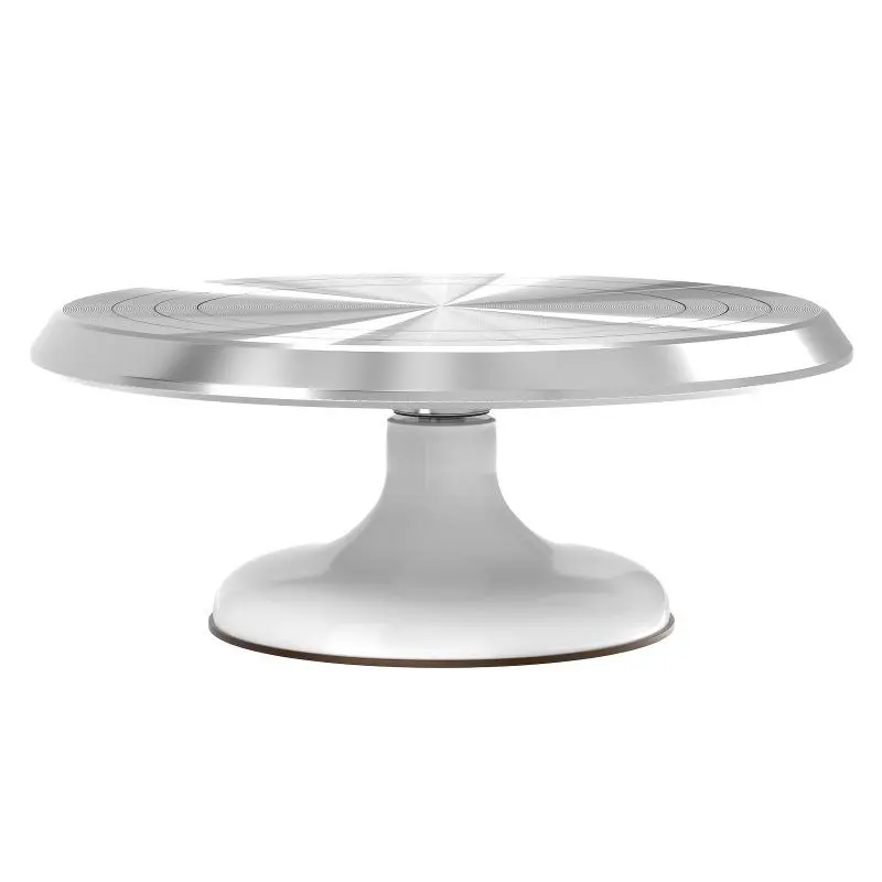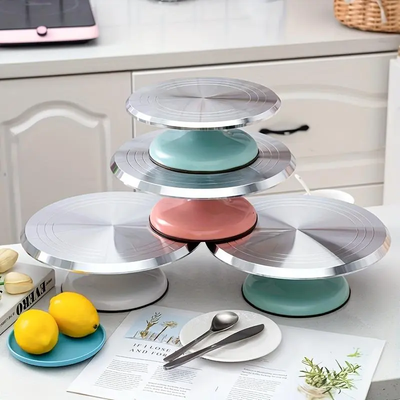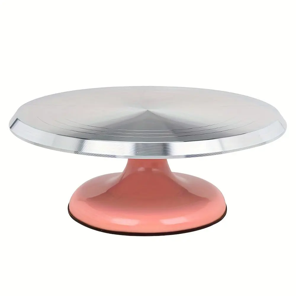 A 10-Inch Cake Turntable And Decoration Table in White And Pink, Designed for Home Baking, Featuring Rotating Tools for Cake Decorating