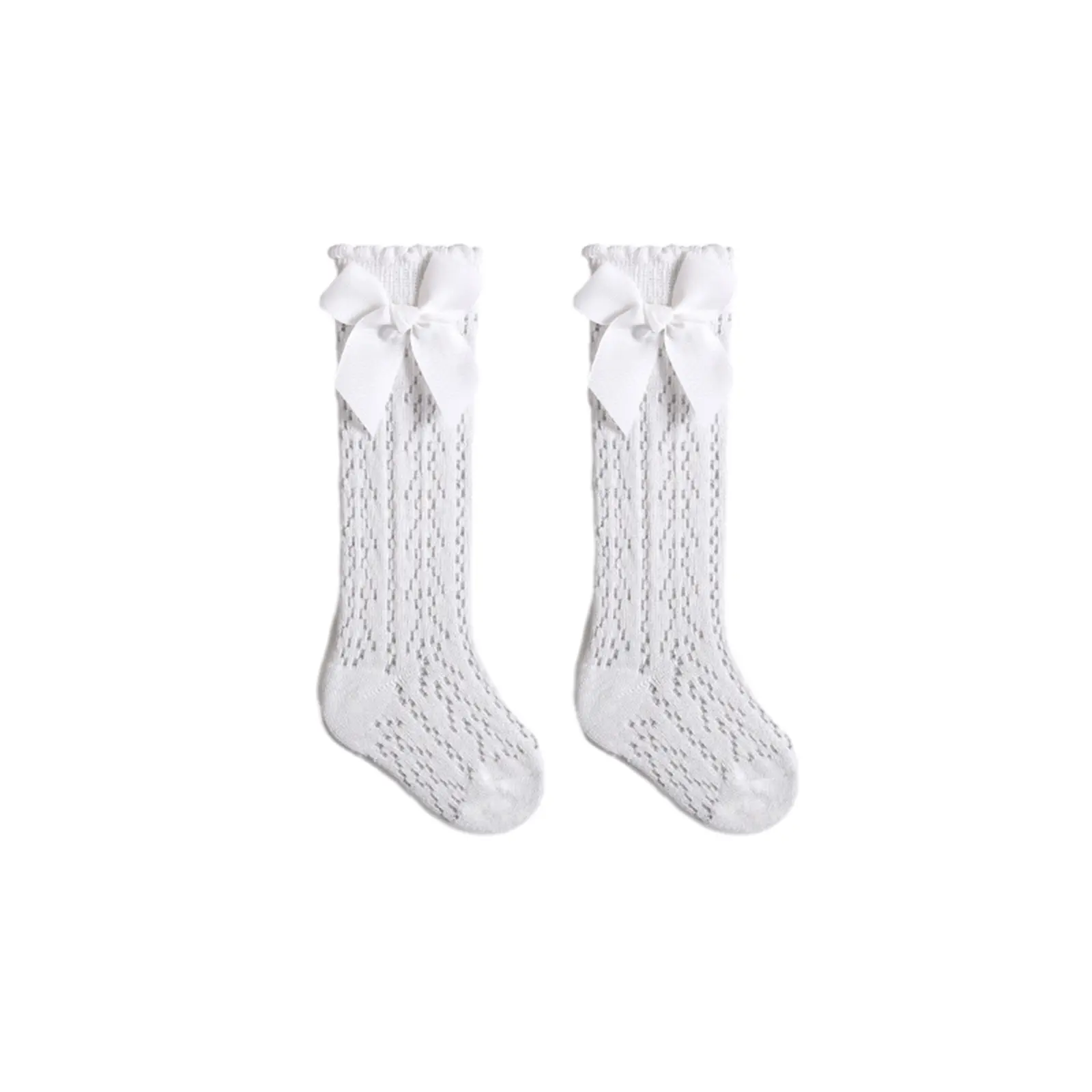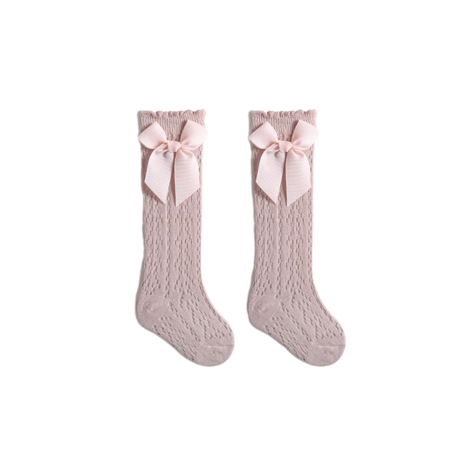 Infant Baby Girls Long Stockings Princess Solid Color Cute Bowknot Socks Spring Summer Thin Mesh Over-The-Knee Socks