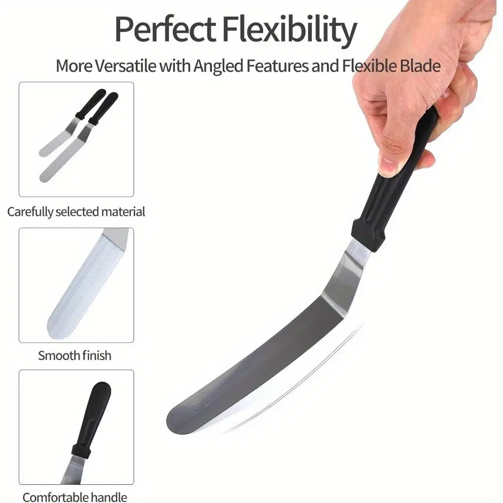 Product description Icing Spatula 3 Pcs Angled Stainless Steel Cream Spatula Curved Angled Offset Blade Professional Frost Palette Knife Set with Lightweight Plastic Handle for Cake Decoration Pastry Baking Kitchen Product Description: Specification: Color: As shown Size: As shown Weight: As shown Material: Stainless steel, Features: