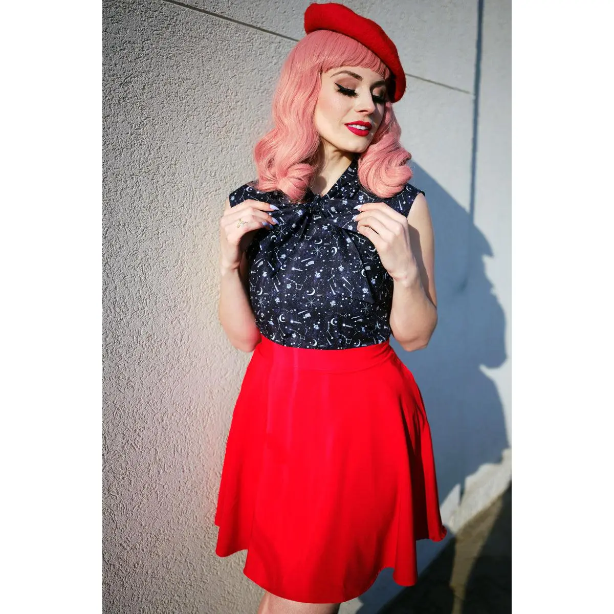 The ultimate fun and flirty skirt! Now available in a vibrant red, this vintage style skirt features an elasticized back waist for ease of wear and a back zippered closure. Pair with one of our Isabel or boat neck tops for a perfect retro look!