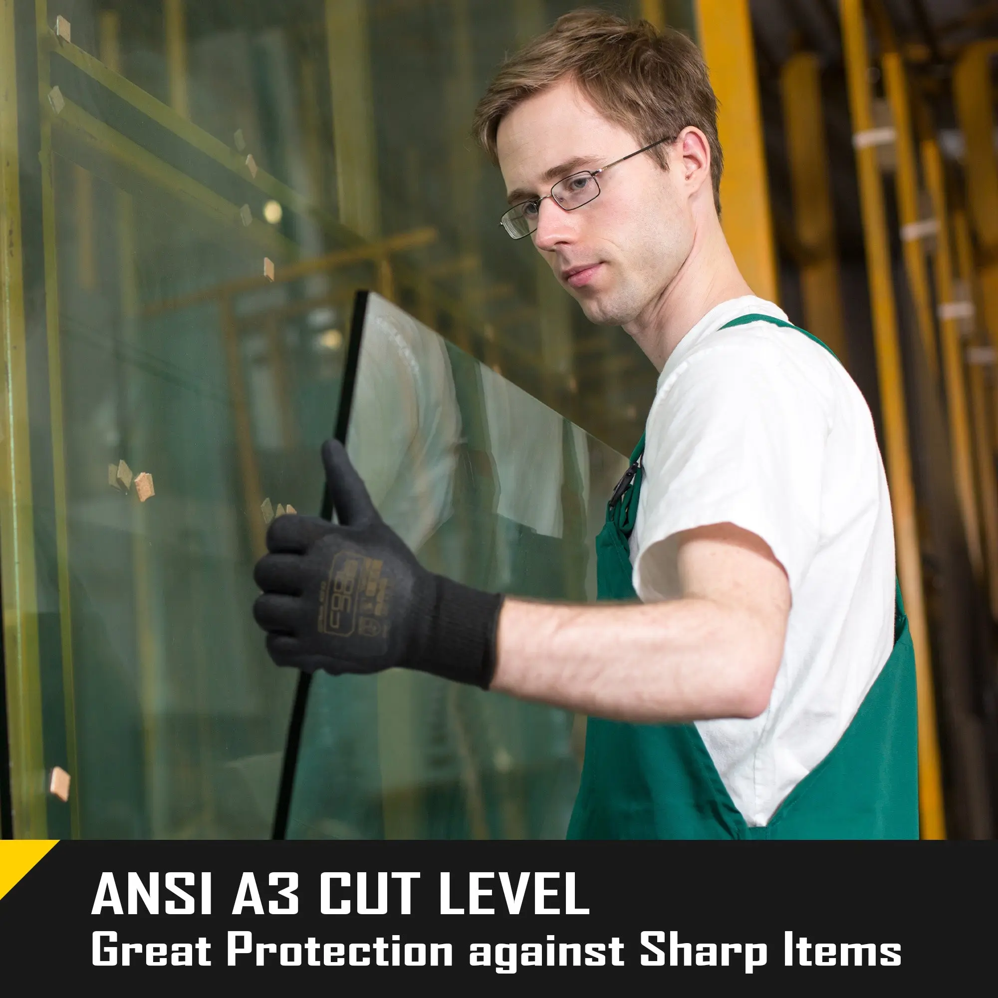 ·[Cut-Resistant and Durable] This glove is made from high-performance polyethylene (HPPE) and metal yarn, providing a remarkable A3 level of cut resistance. With a cut protection level 3, it can withstand the cutting force of sharp objects up to 1000 grams.