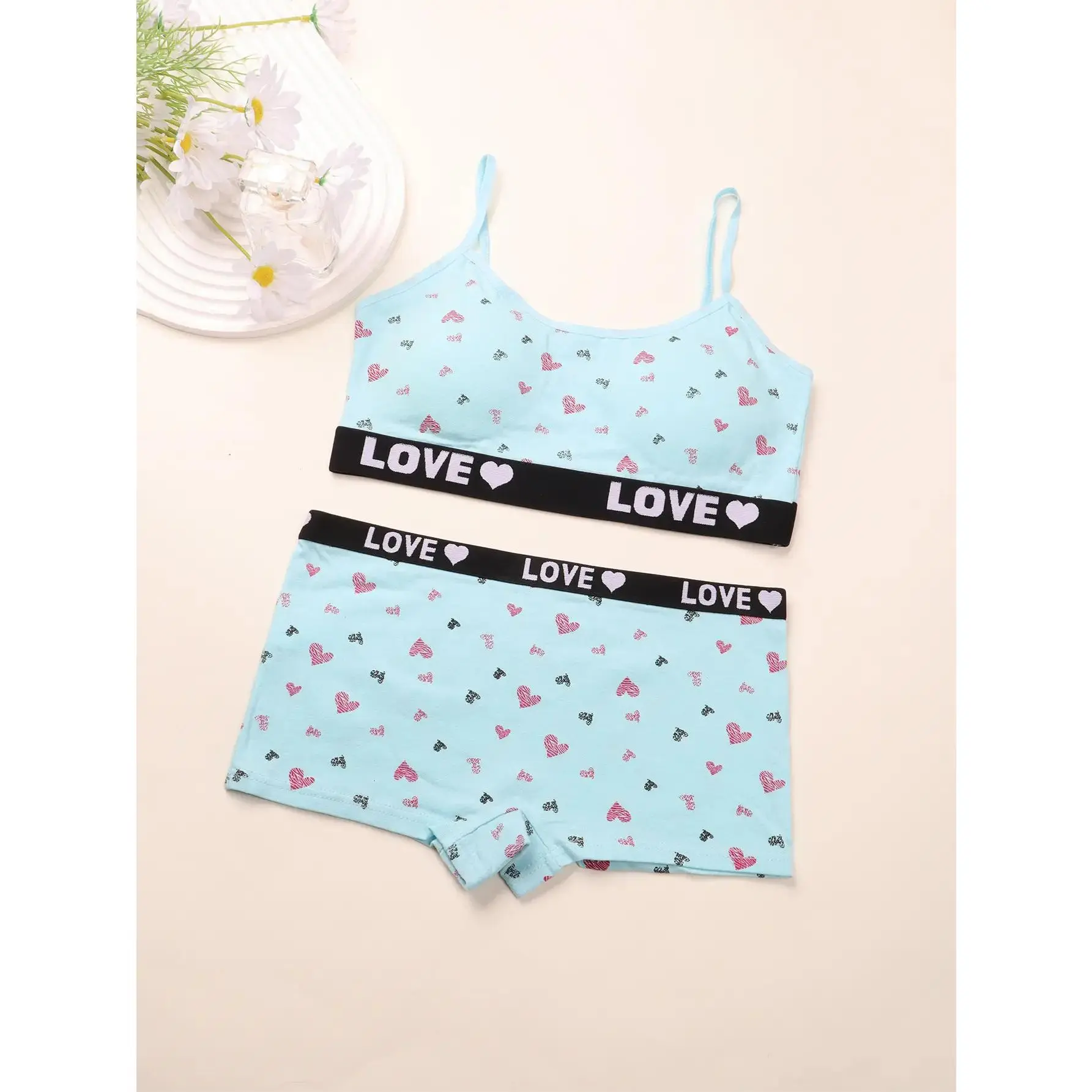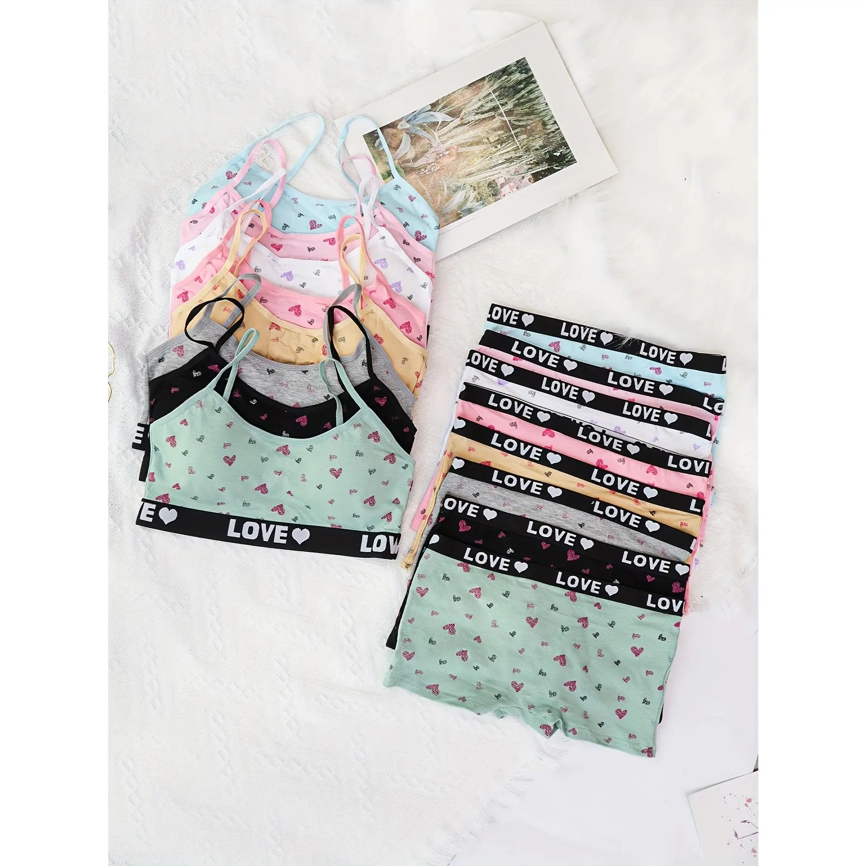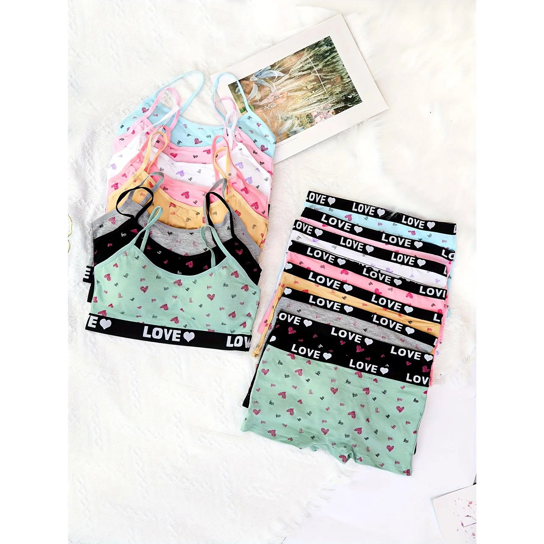 4 Sets in a Pack of Cotton Girls' Bra and Panty Set Suitable for 7-12 Years Old