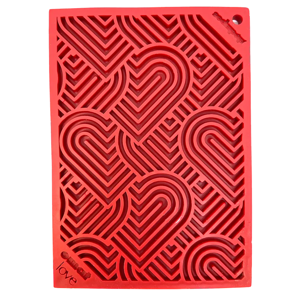 Imagine turning everyday treat time into a heartfelt bonding experience with the Love eMat, a cleverly designed enrichment lick mat from SodaPup that combines fun, function, and affection in one red, heart-themed accessory. Perfect for dogs and cats alike, this innovative mat features an array of interconnected heart shapes with varied textures and depths, encouraging your pet to explore and engage longer than standard options. Whether you're dealing with a pup who wolfs down food too quickly or one that gets restless when left alone, the Love eMat delivers targeted mental stimulation that taps into your pet's natural licking instincts to promote calm and focus.