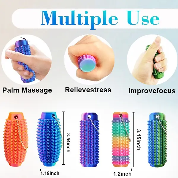·[SENSORY EXPERIENCE] Unique roller shape and small plastic spikes combine with a spiked grip texture design.There's no noise when in use, just instant sensory input to relieve anxiety in meetings, commutes or crowded spaces