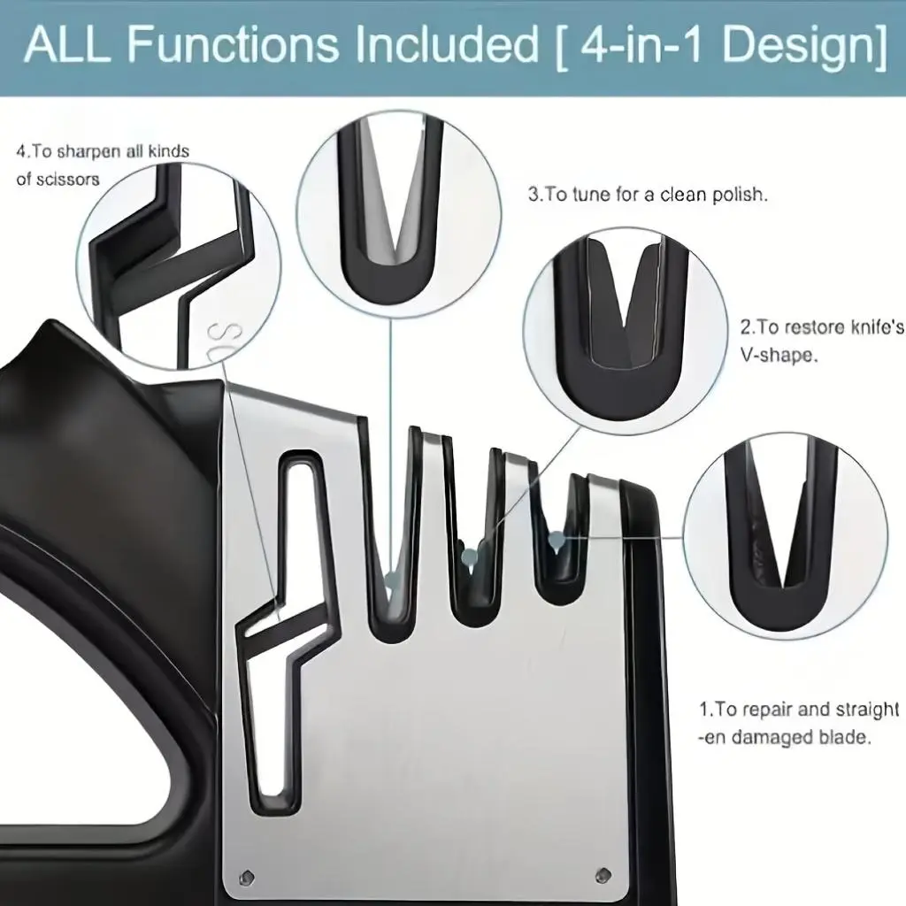 4-In-1 Professional Kitchen Cutting Tool Grinder | Fast, Easy, And Efficient Sharpener For Various Cutting Tools - Anti-Slip Base, Suitable For Home And Restaurant Use, Made Of Abs