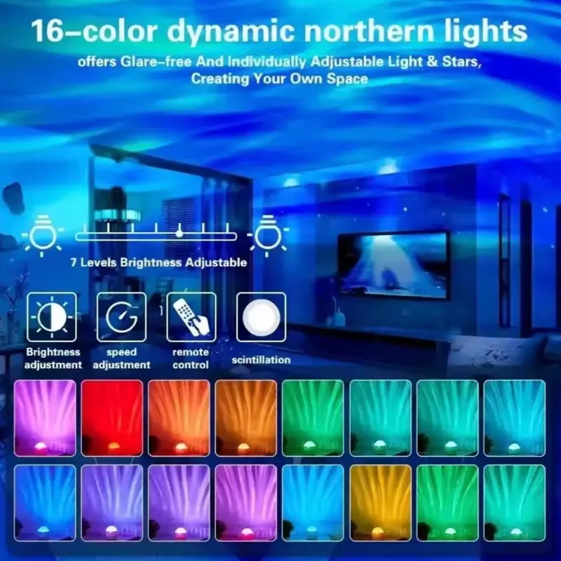 ·【Create The Perfect Vibe】 This battery-operated northern light projector brings the beauty of 16 dazzling aurora light colors right into your room. With 4 dynamic light effects, the aurora projector creates mesmerizing displays that mimic the northern lights. Whether used as ambient lighting for room decor or a calming night light, this galaxy projector is perfect for any mood and adds a magical touch to any space