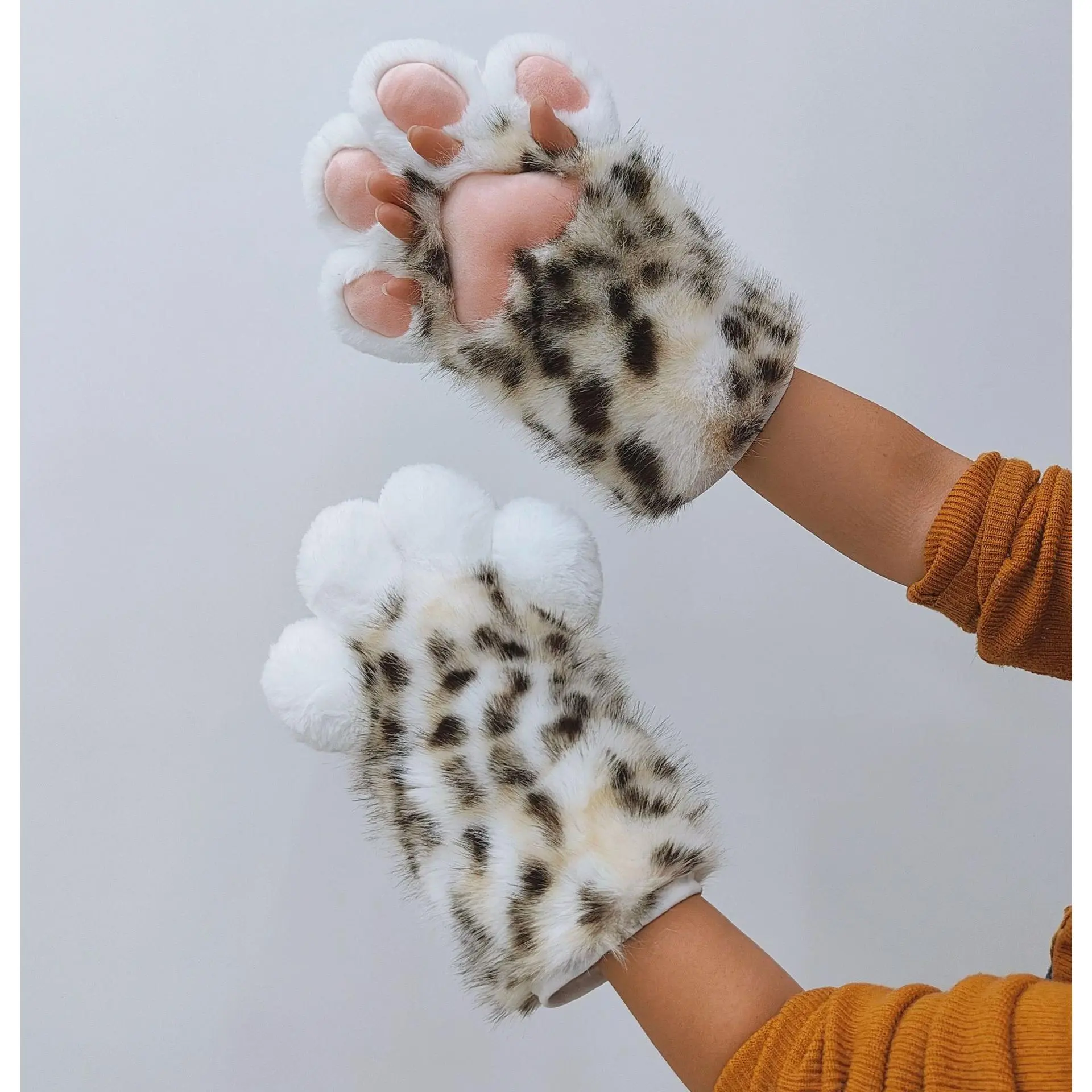 Fursuit Leopard Print Kigurumi Cat Paws Cartoon Plush Furry Cosplay Kig Costume Nail Tiger Claws Full Finger Performance Props
