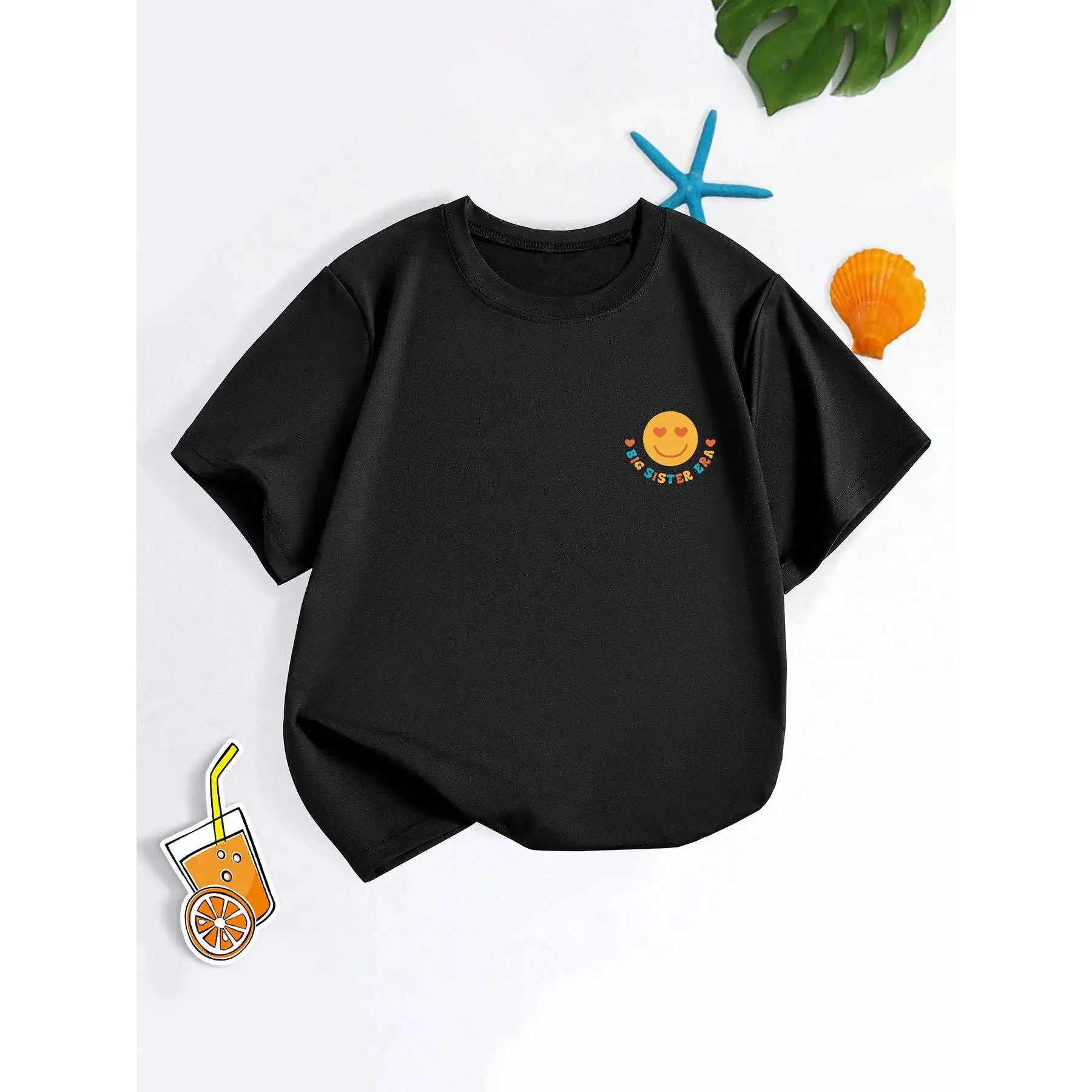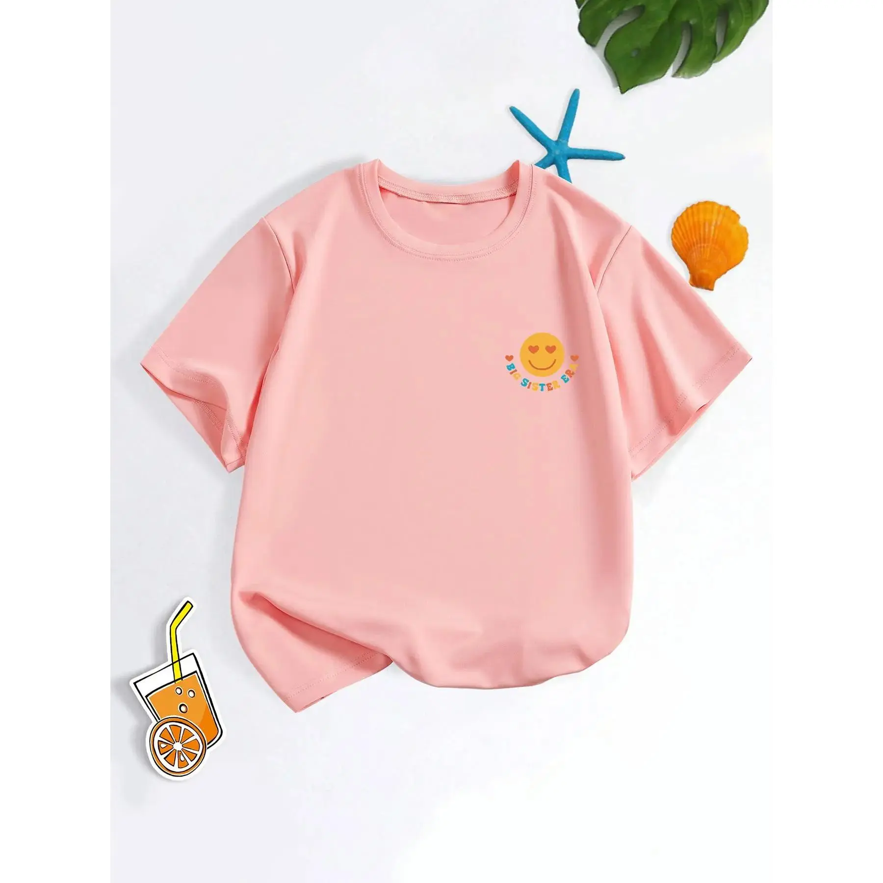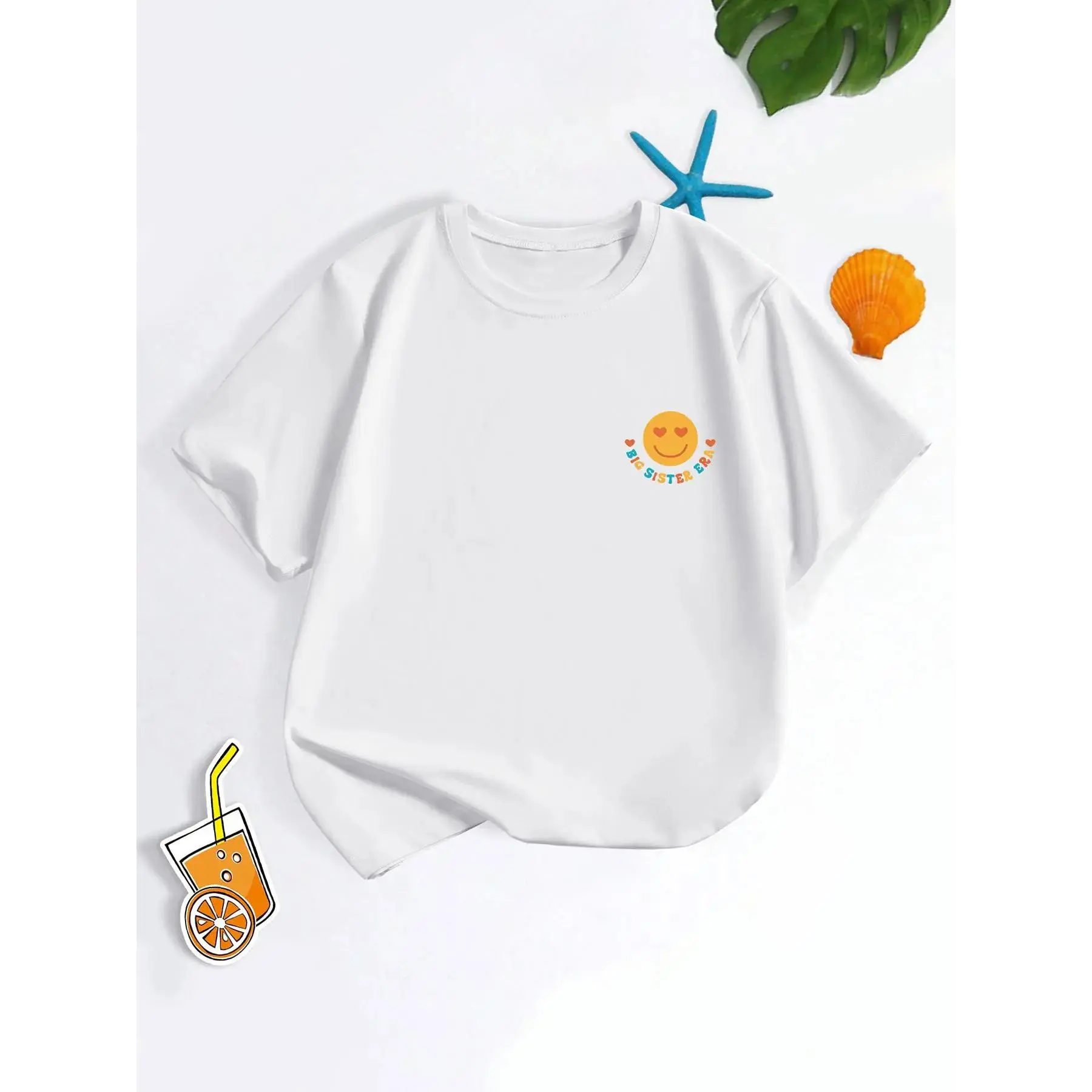 Girl's Cartoon Letter Print Round Neck Tee, Casual Short Sleeve T-shirt for Daily Wear, Kids Clothes for All Seasons, Graphic Print Shirt
