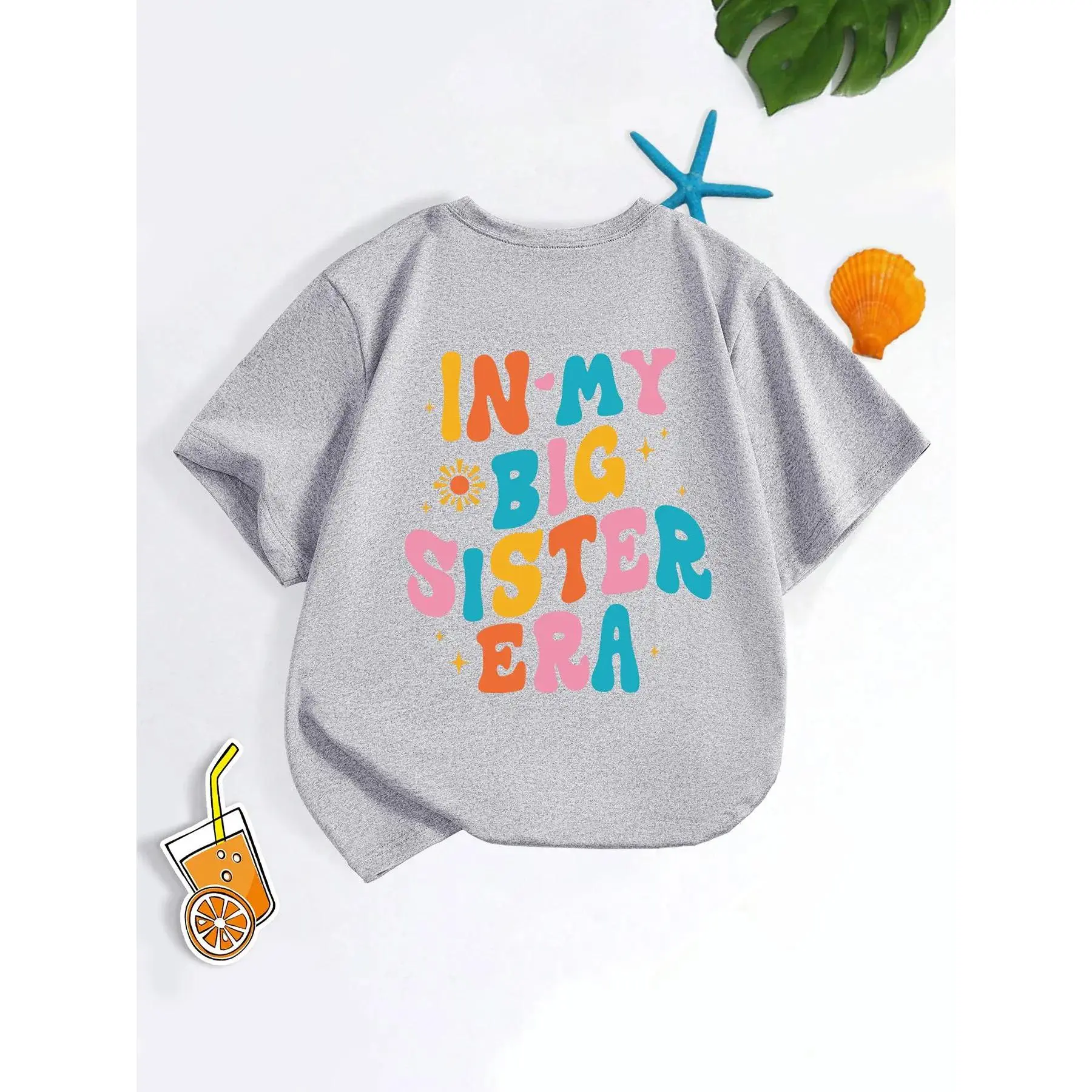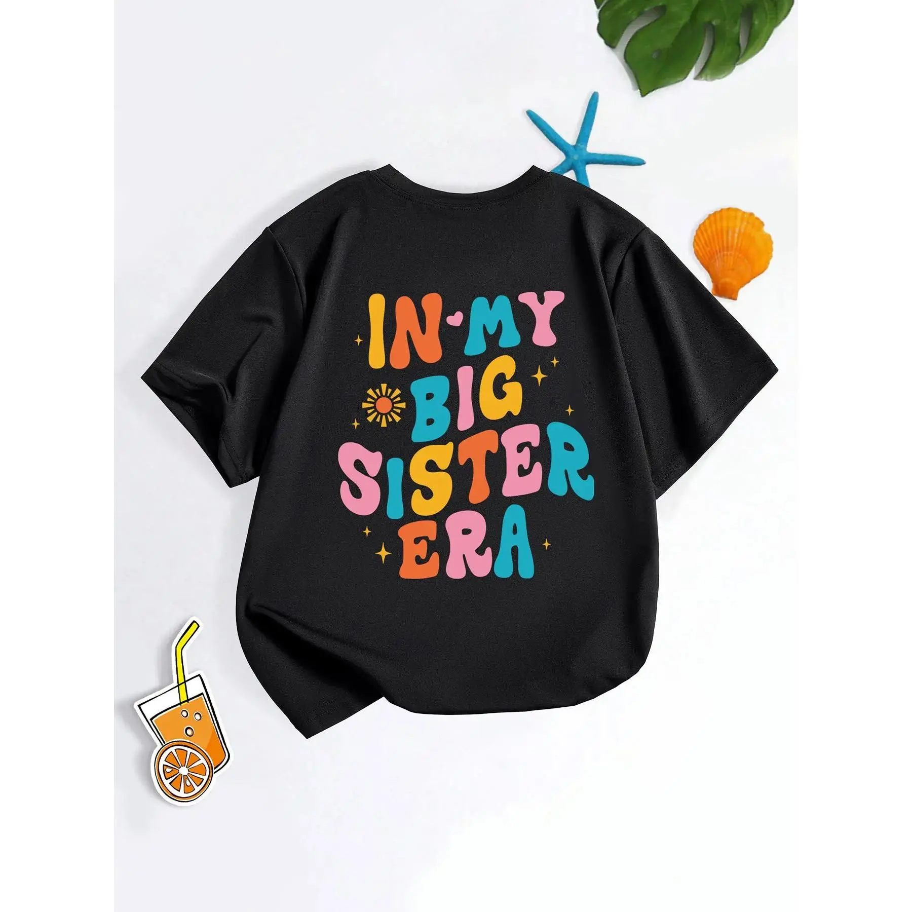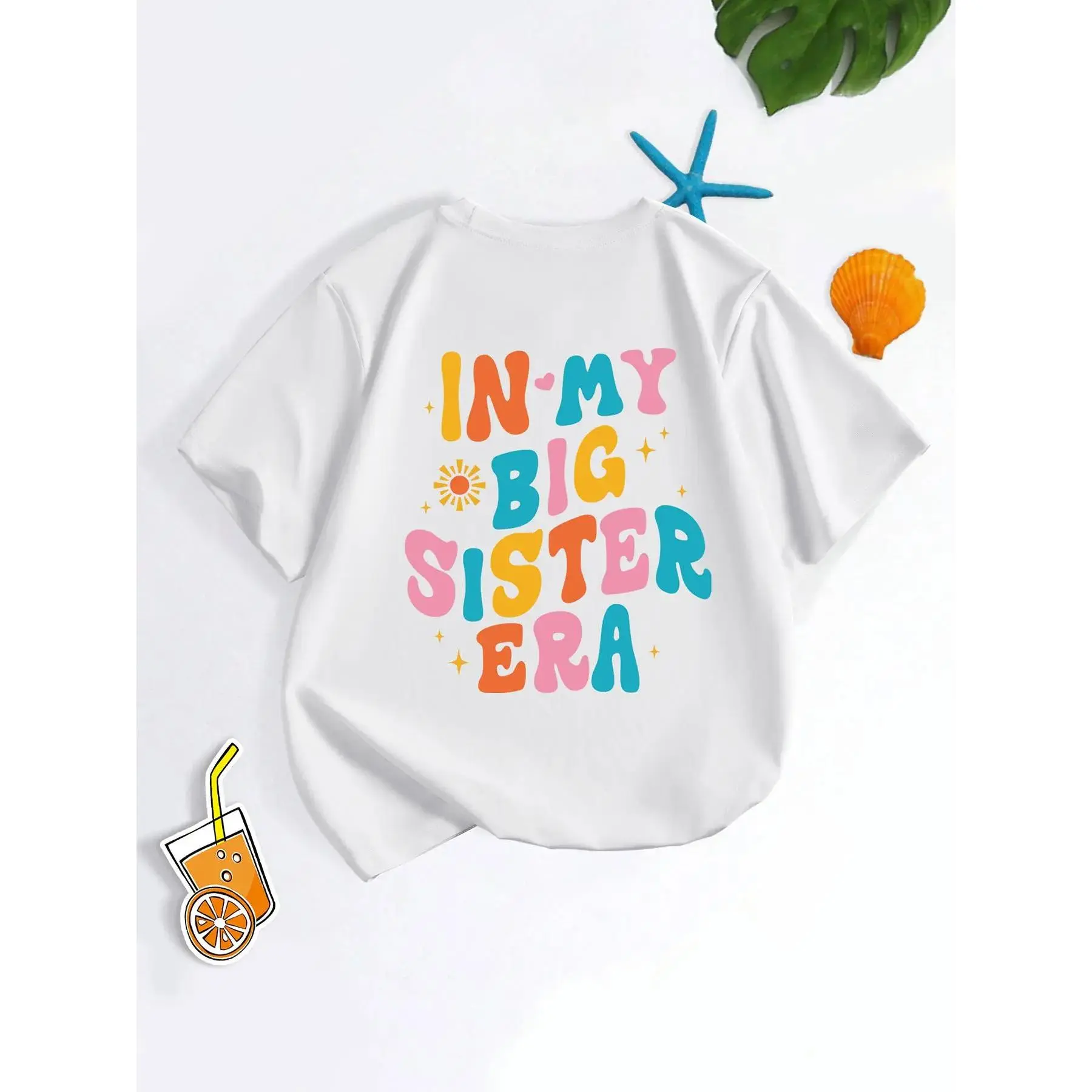 Girl's Cartoon Letter Print Round Neck Tee, Casual Short Sleeve T-shirt for Daily Wear, Kids Clothes for All Seasons, Graphic Print Shirt