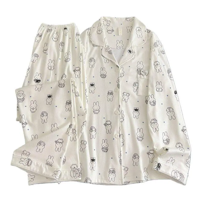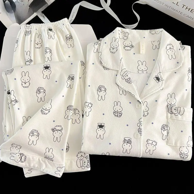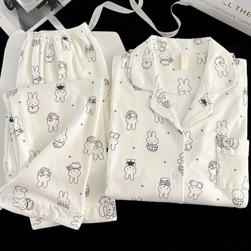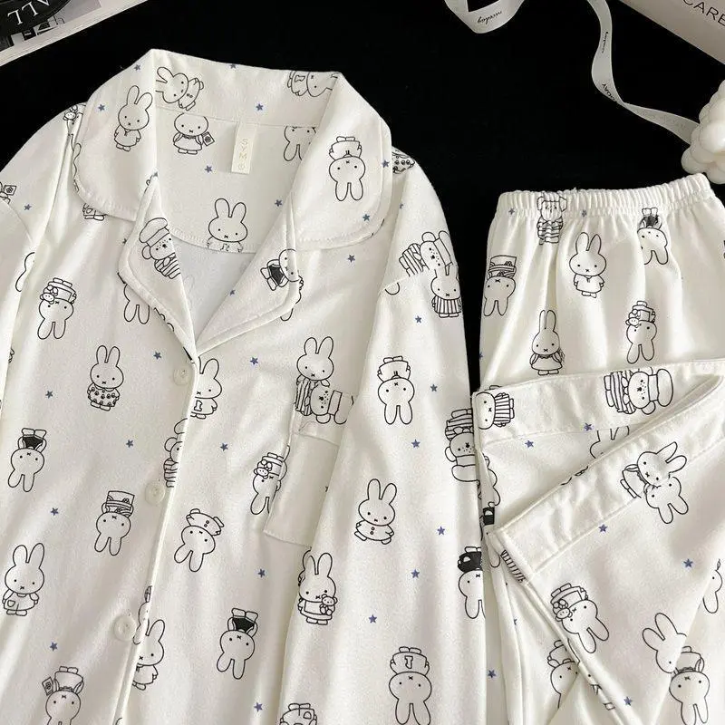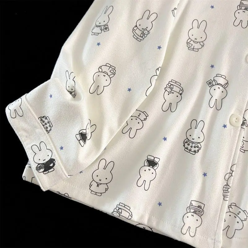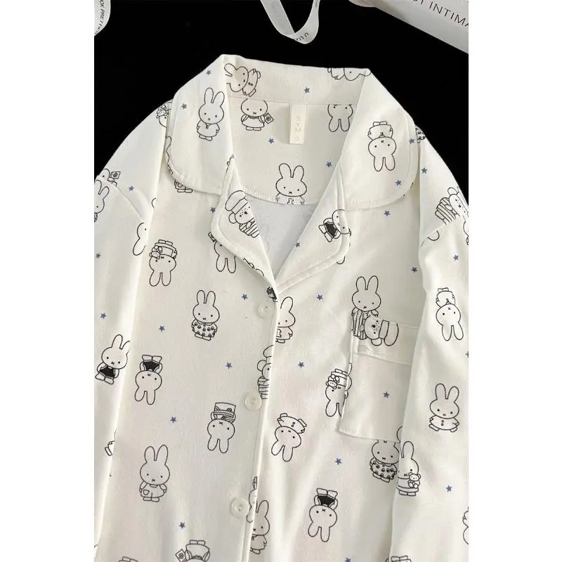 Kawaii Miffy Bunny Thermal Brushed Flannel Sleepwear Set Cozy Open-Front for Women Cute Cartoon Autumn Winter Pajamas K-trend