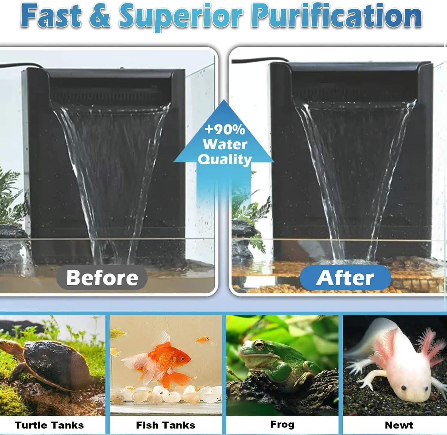 • CRYSTAL CLEAR WATER GUARANTEED: Our powerful 4-stage filtration system combined with an integrated UV light eliminator targets the root cause of green, cloudy water. Watch as your 40-150 gallon tank transforms from murky to pristine, providing a healthy, transparent habitat for your aquatic pets.