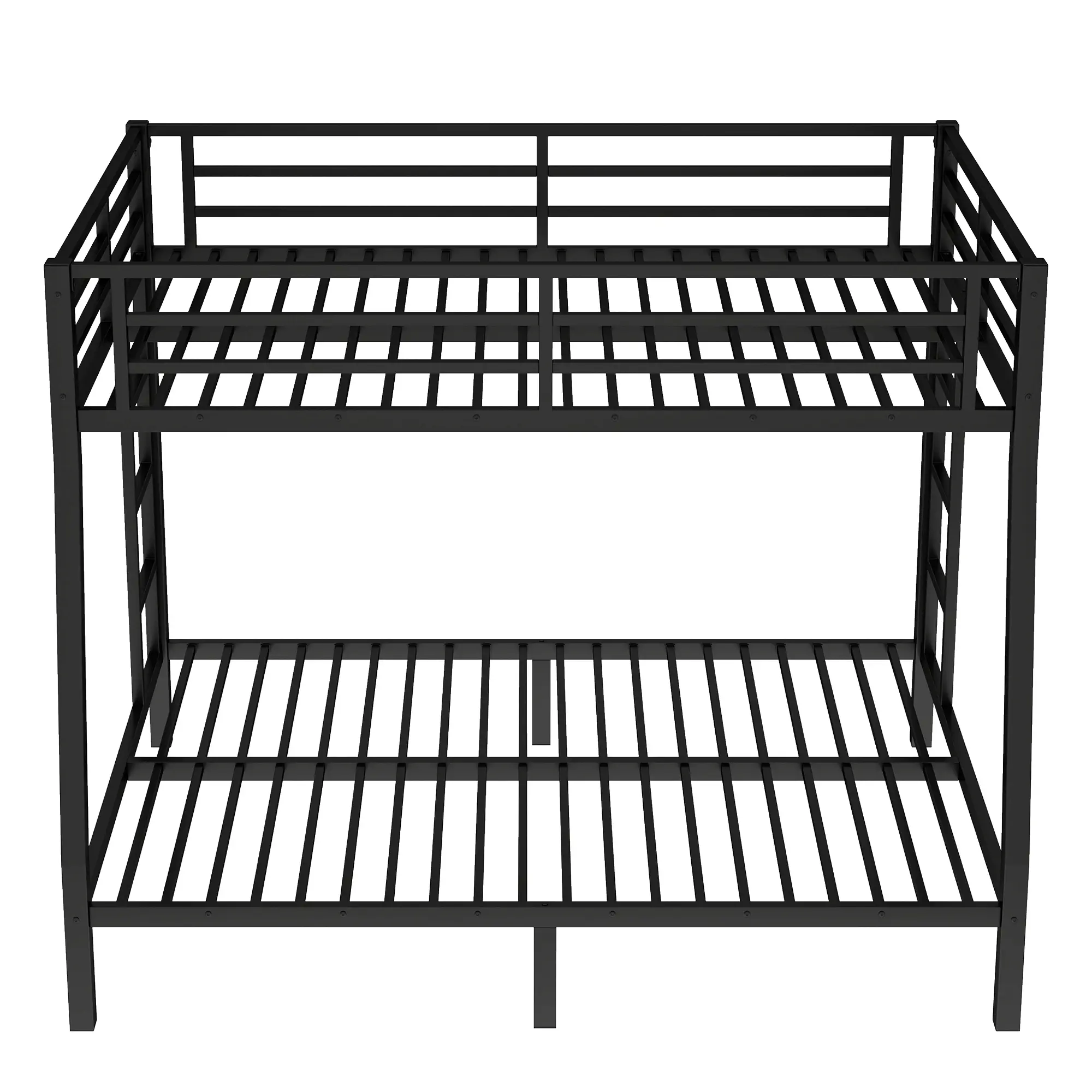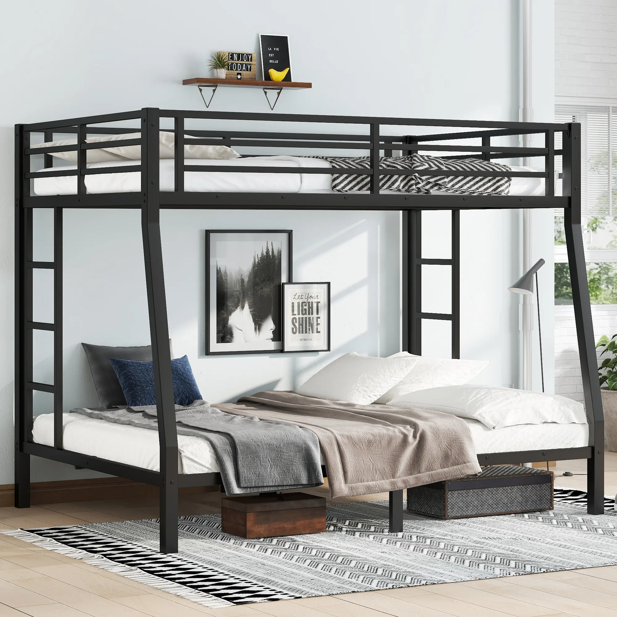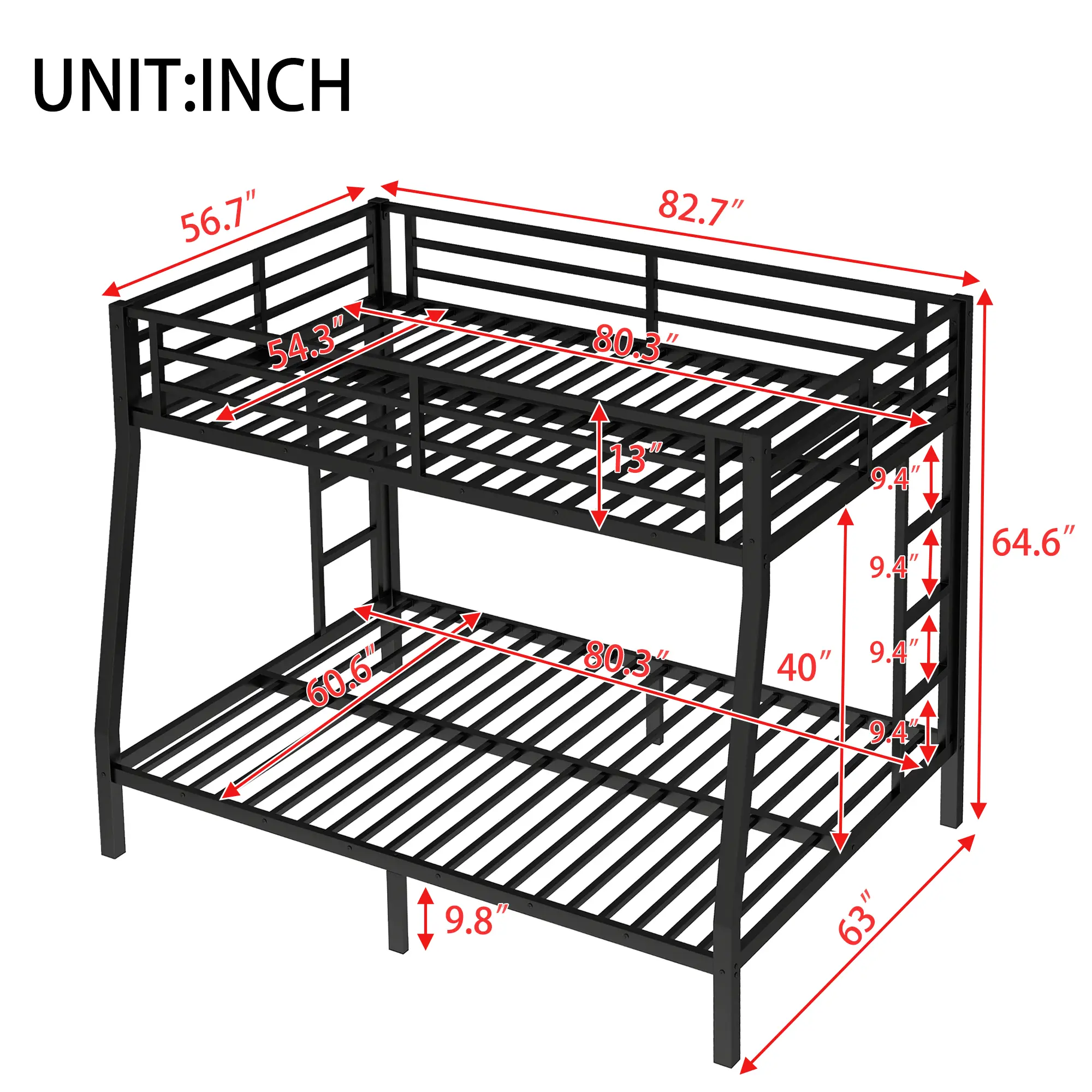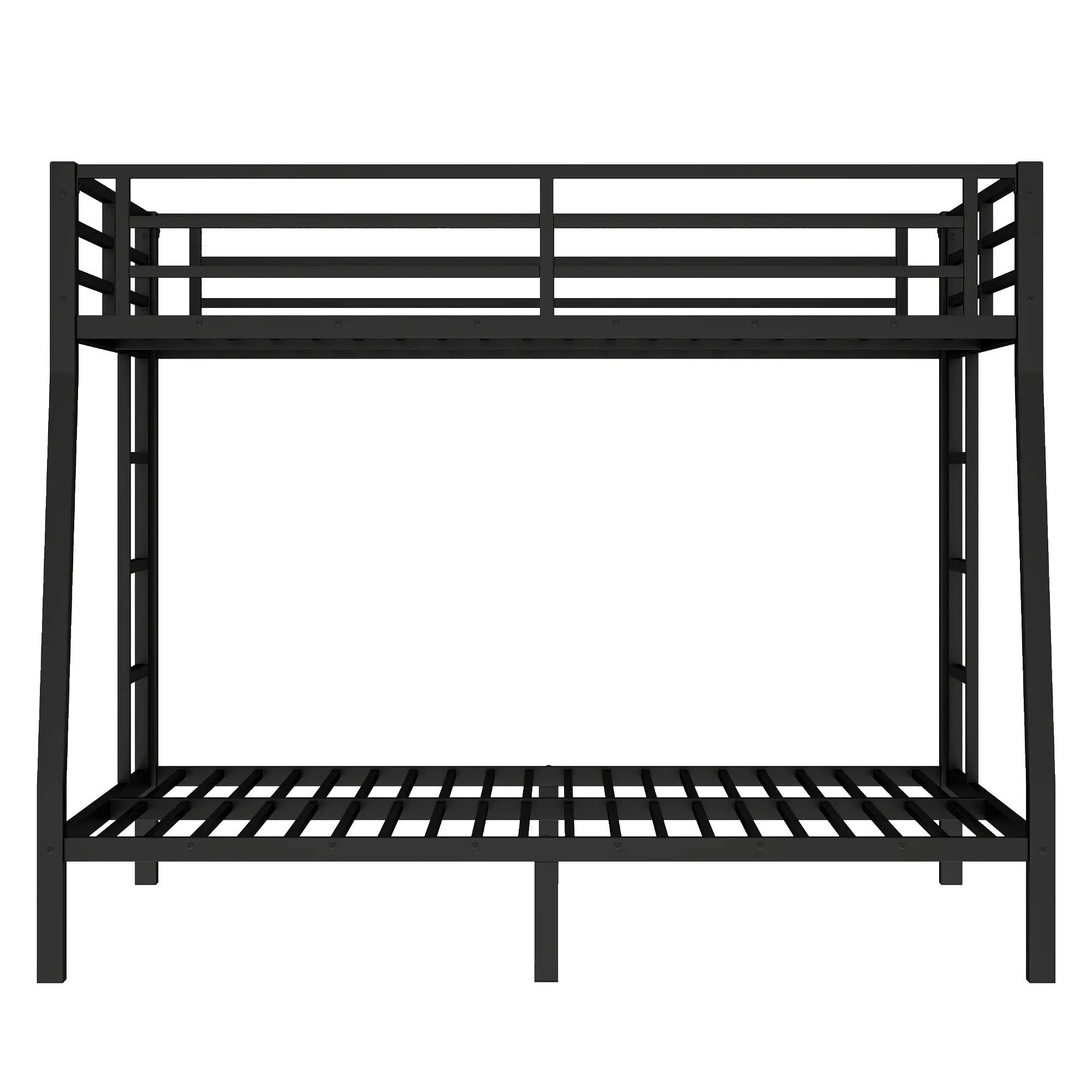 Twin over Full Bunk Bed with Ladder, Heavy Duty Metal Bunk Bed Frame with Safe Guardrail, Twin Full Size Bed Bunk Bed for Teens Adults Small Room, Black