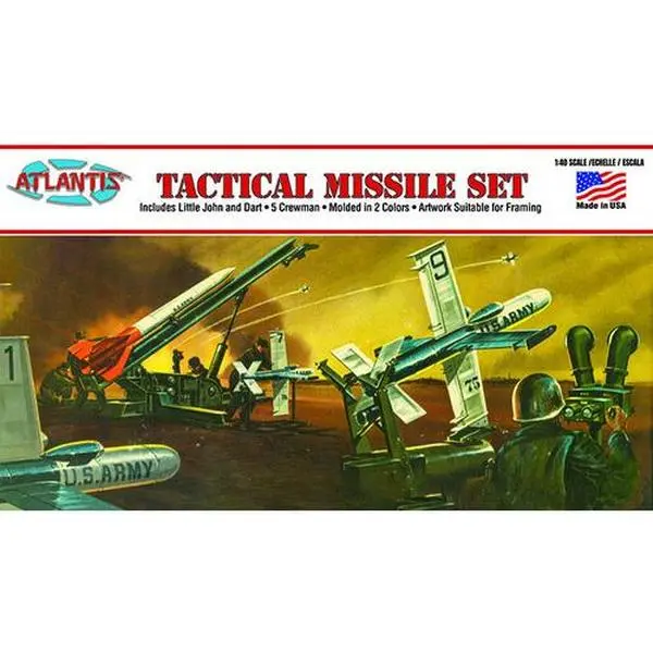 1:40 Scale. Measures 6 inches long with 67 parts. This kit is molded in white and olive drab. Includes 7 figures with the 3 Darts and Little John Missile. Skill level 2.
