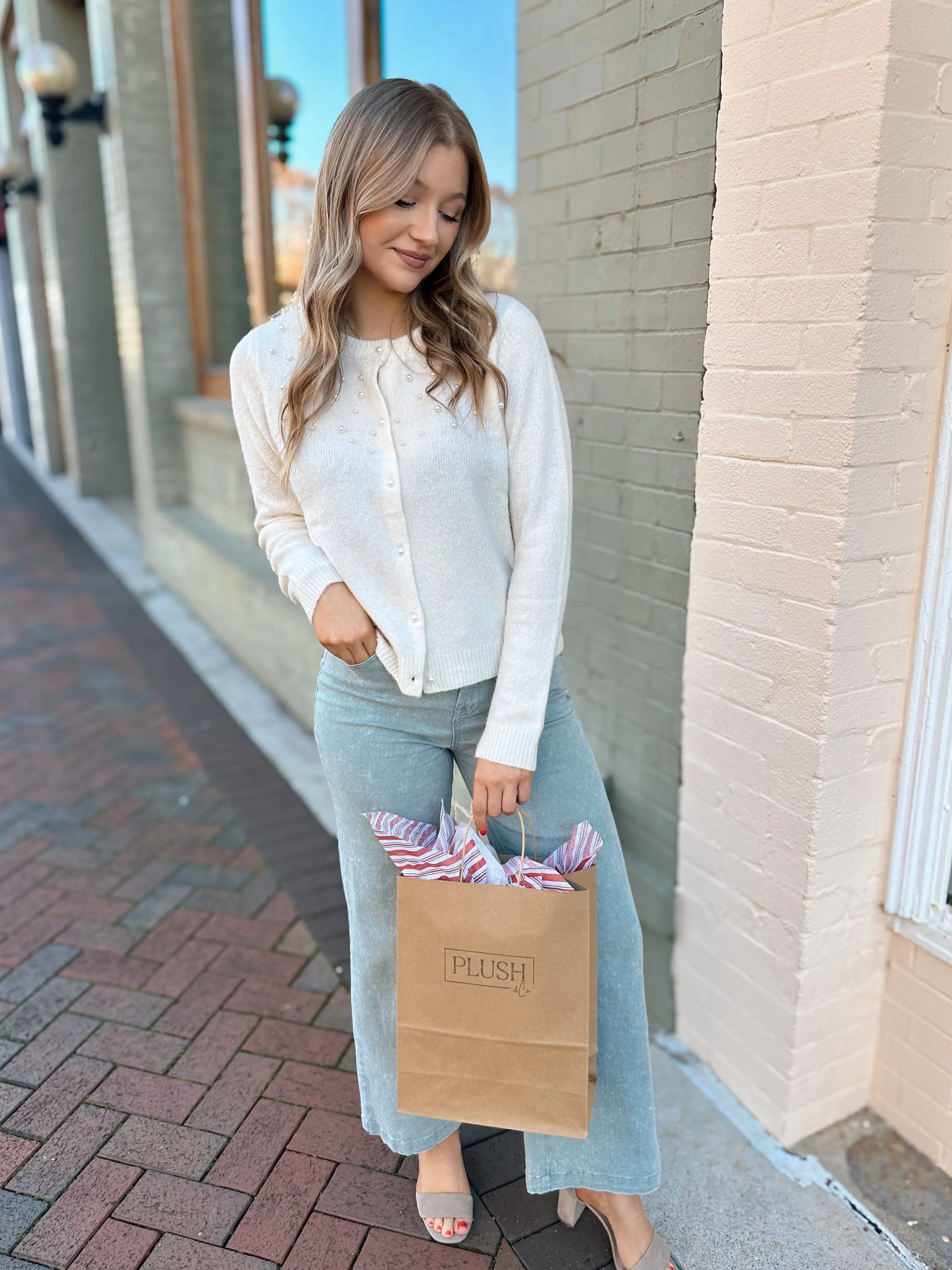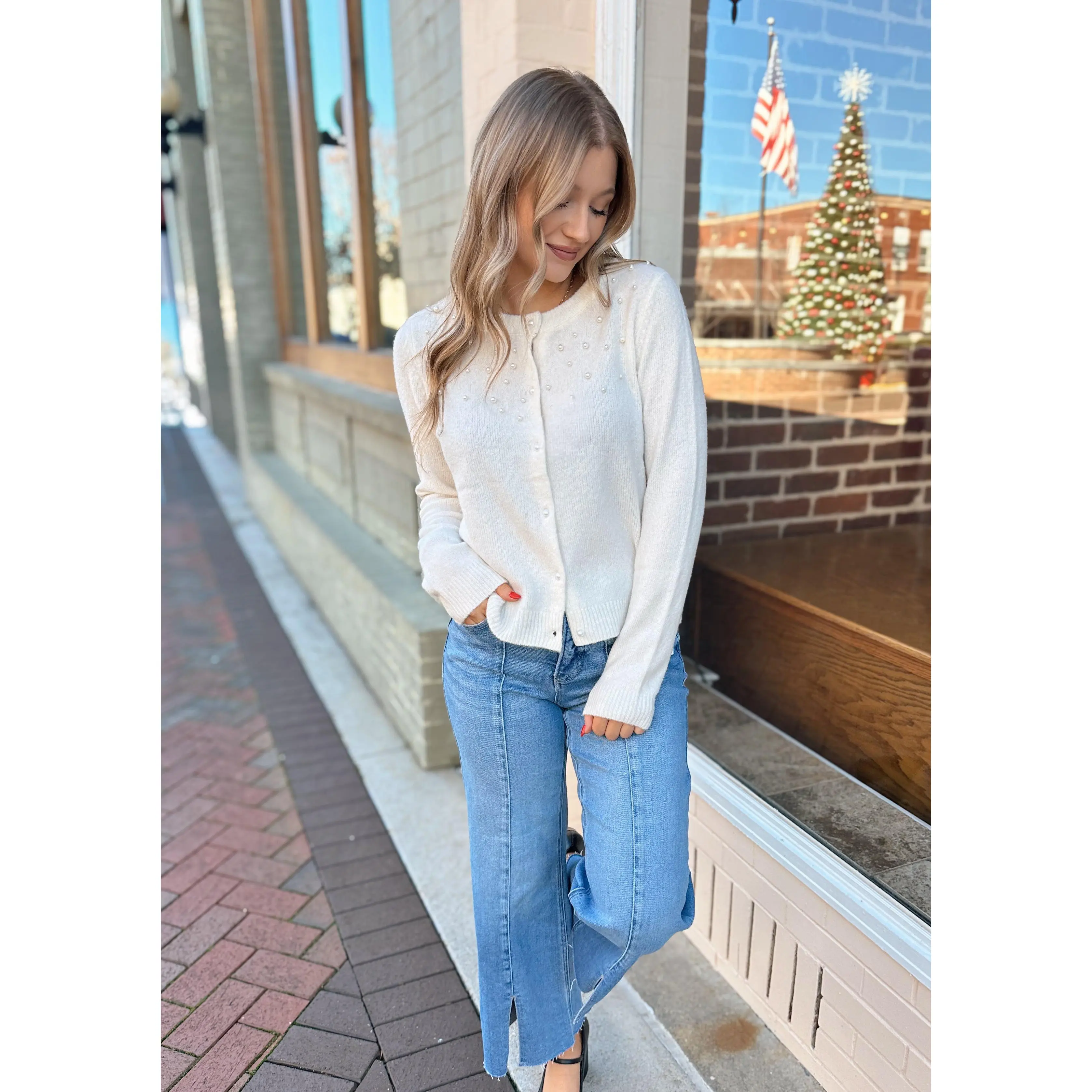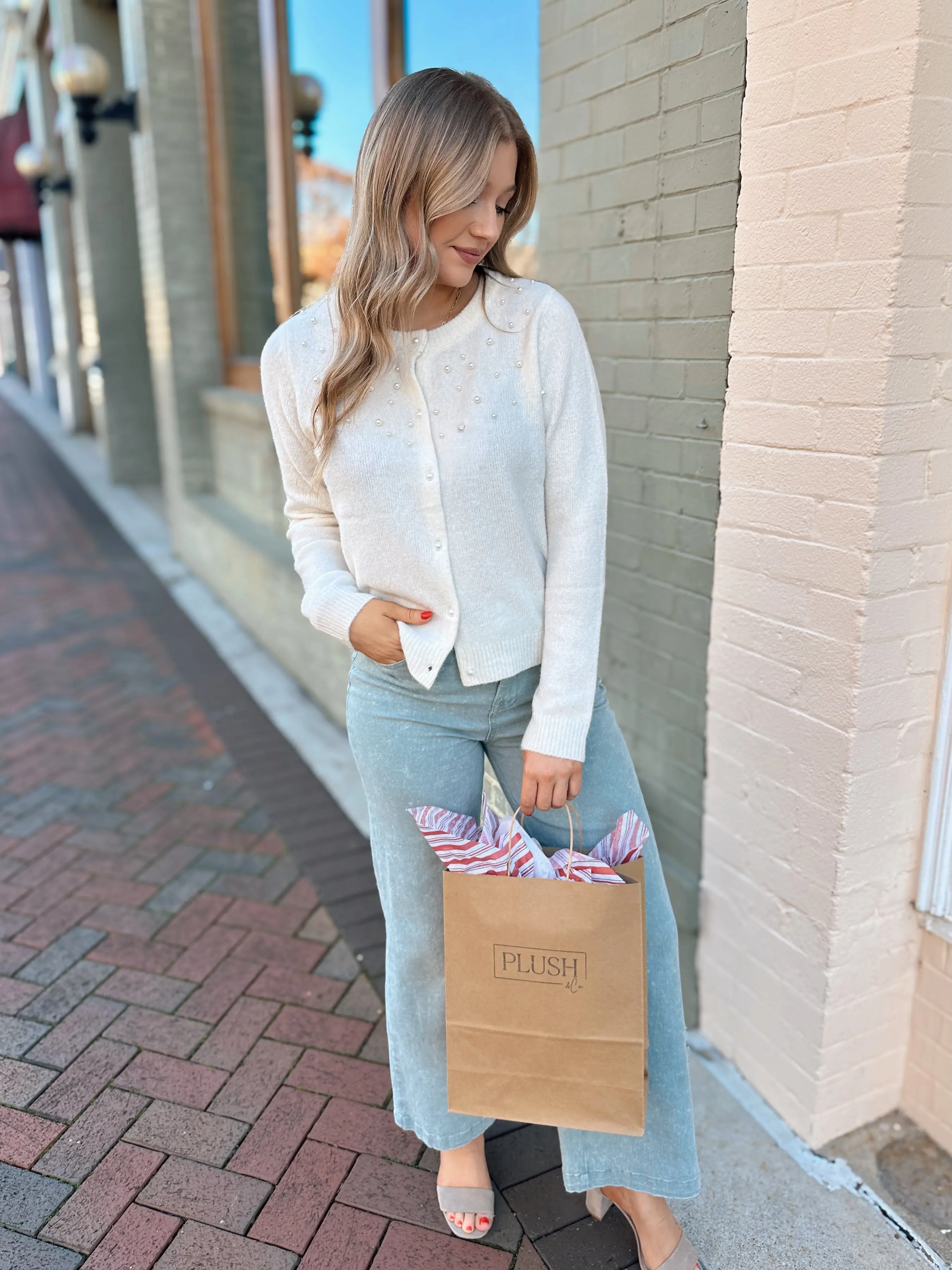 This new cardigan is the perfect blend of timeless and festive! Available in cream and red, this long-sleeve sweater features delicate pearl accents that add a touch of elegance to any look. Dress it up for Christmas gatherings or layer it over your favorite outfit for a cozy, chic touch all season long.