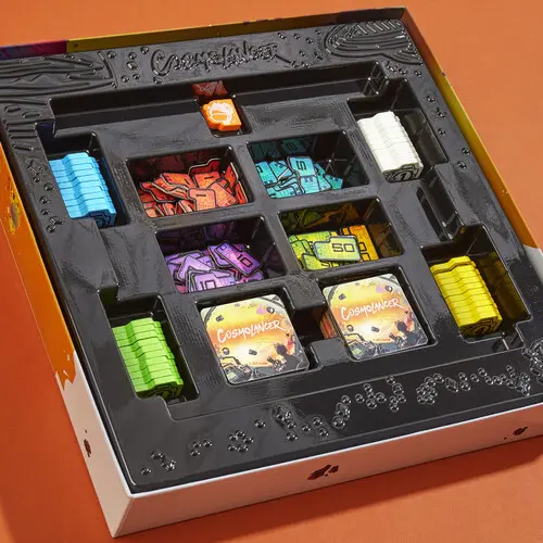 Description:Congratulations, you’ve landed your first gig as a freelance space photographer—a Cosmolancer!While the pay is mediocre—and doesn’t account for the danger—Cosmolancing is your lifelong dream realized. Take to the stars in the Cosmolancer game, a galactic reimagining of the Kingdoms game by Reiner Knizia!Place Photo Op tiles, Hazard tiles, and Imaging Devices to capture the most lucrative photos of space phenomena. But stay alert for cosmic dangers that can sabotage your shots. Earn the most Interstellar Credits over 3 rounds to win!Strategy board games are fun games for game night and anytime play. And this sci-fi board game for adults, teens, and kids ages 9+ makes a great gift for fans of Reiner Knizia games, strategy games, and family games.Features:REIMAGINING OF FAVORITE STRATEGY GAME: The Cosmolancer game is a galactic reimagining of legendary designer Reiner Knizia’s Kingdoms game! Play as a Cosmolancer (space photographer) and compete to be the bestFAST-PACED TILE LAYING GAME: In this highly competitive tile placement game, try to collect the most Interstellar Credits by strategically placing Photo Op tiles and Imaging Devices on the board. But watch out for Hazards and Black HolesBY AWARD-WINNING DESIGNER REINER KNIZIA: Set in a fantastical galaxy of Imposing Squids and Galactic Hounds, the Cosmolancer board game is a spacefaring take on Reiner Knizia’s acclaimed Kingdoms gameSABOTAGE WITH HAZARDS: Stay alert! Opponents can play Hazard tiles, such as the Abominable Worm and Cosmopoachers, to sabotage photos and subtract credits from another player’s scoreWOODEN TOKENS AND CUSTOM ARTWORK: Includes premium components, wooden tokens, and custom artwork by Hugo Cuellar and Charlie LaytonEASY TO LEARN GAME FOR KIDS AND ADULTS: This fun board game’s rules are simple enough for kids ages 9+ to jump into a game, while its strategy and cutthroat action will hook older playersREPLAYABLE, ADDICTIVE FUN: The quick-playing rounds fly by and leave players craving another game! It’s an exciting game for Family Game Night or anytime fun, and the compact size makes it a great travel game, tooIncludes 1 Gameboard, 22 Cardboard tiles, 41 Wooden tokens, 94 Cardboard Interstellar Credits, and 1 Rulebook.Ages 9 and upFor 2 to 4 players.Play time: 45 mins.Colors, packaging, accessories, and decorations may vary and are subject to change.