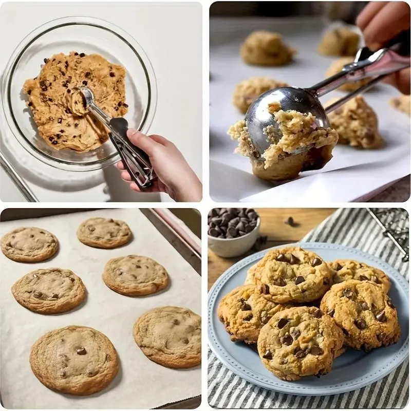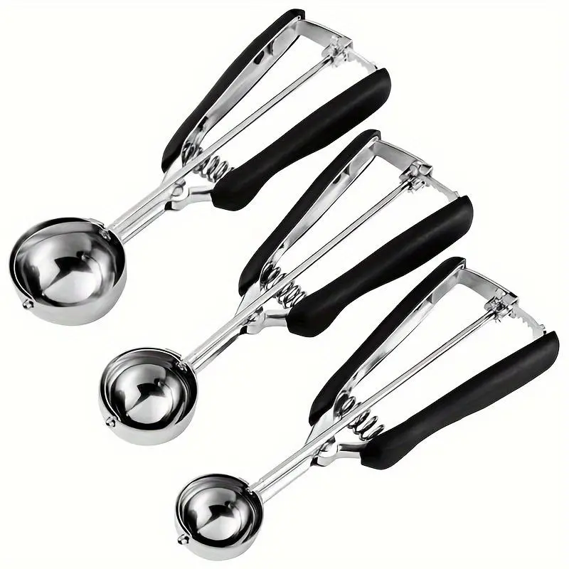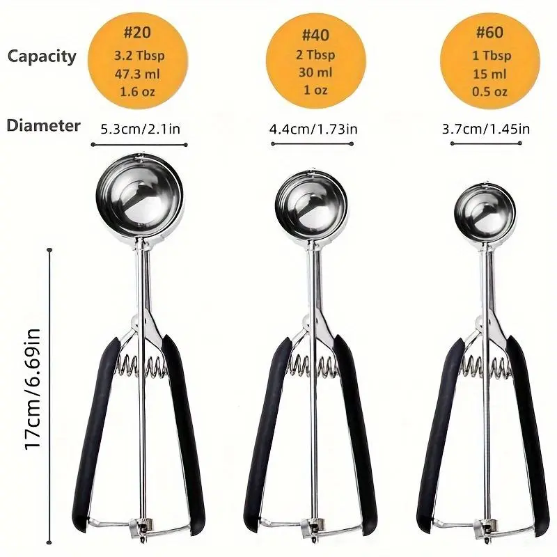 1/3pcs Stainless Steel Cookie Scoop Set with Non-Slip Rubber Handle, Uncharged Power Mode, Includes 1/2/3 Tablespoon Sizes, 18/8 Baking Scoops with Trigger Release for Ice Cream and Cookie Dough.