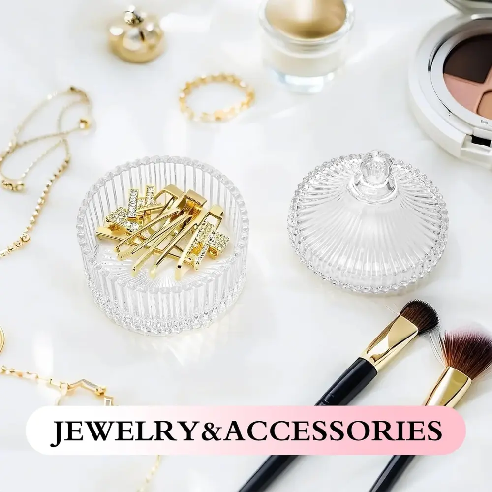 This body powder set comes with a sleek, lidded crystal glass container. It keeps the puffs dust-free while serving as a stylish vanity decor piece. It also provides secure storage for your entire powder set, making it both functional and aesthetically pleasing.
