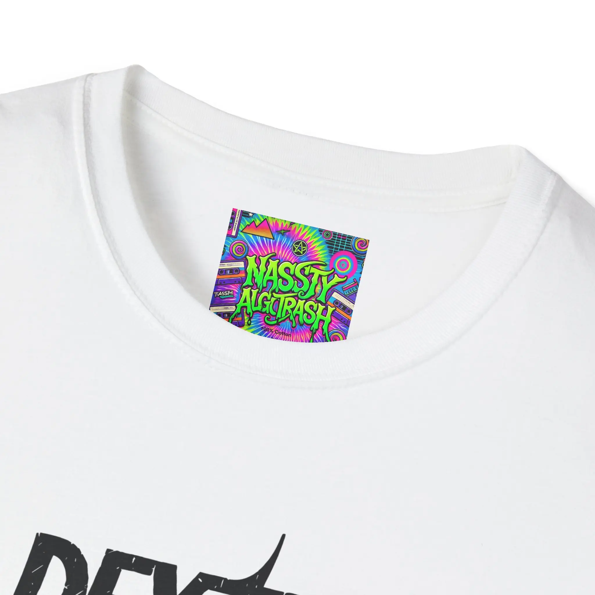 - Direct-to-Garment prints on body with Direct-to-Film (DTF) for sleeve/neck label details