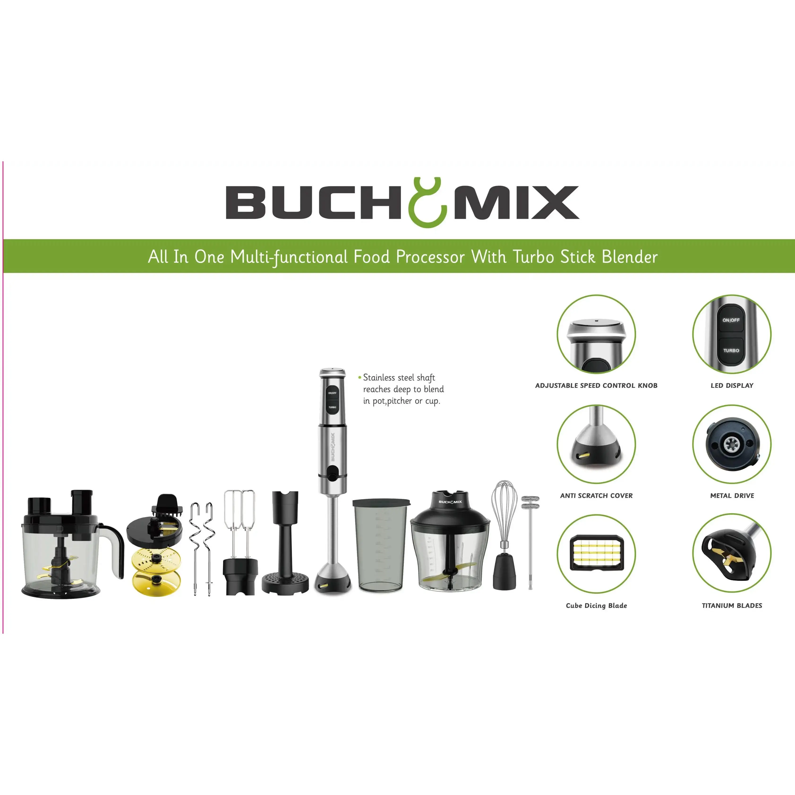 12 IN 1 Food processor with Turbo Stick Immersion Blender