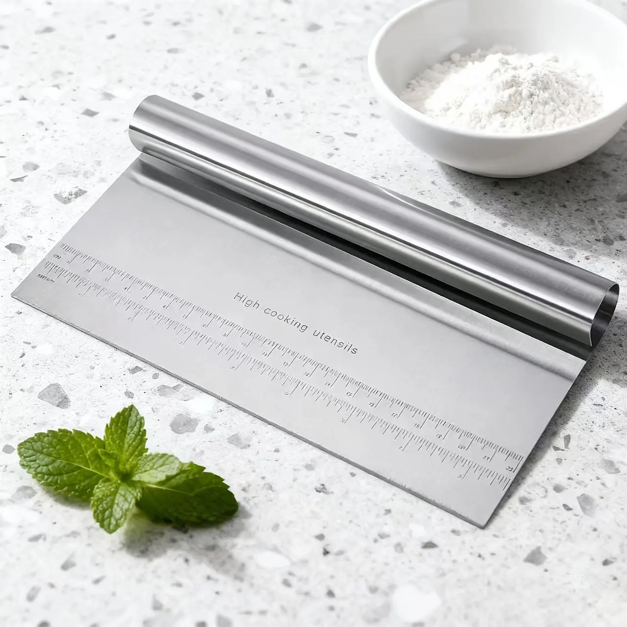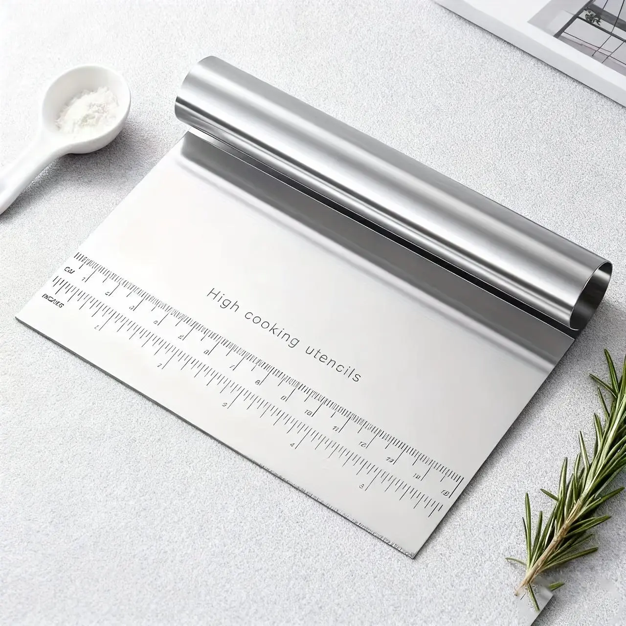 Stainless Steel Scraper with Size Markings for Cutting Dough, Scraping Cakes, And Handling Cream, Ideal for Baking