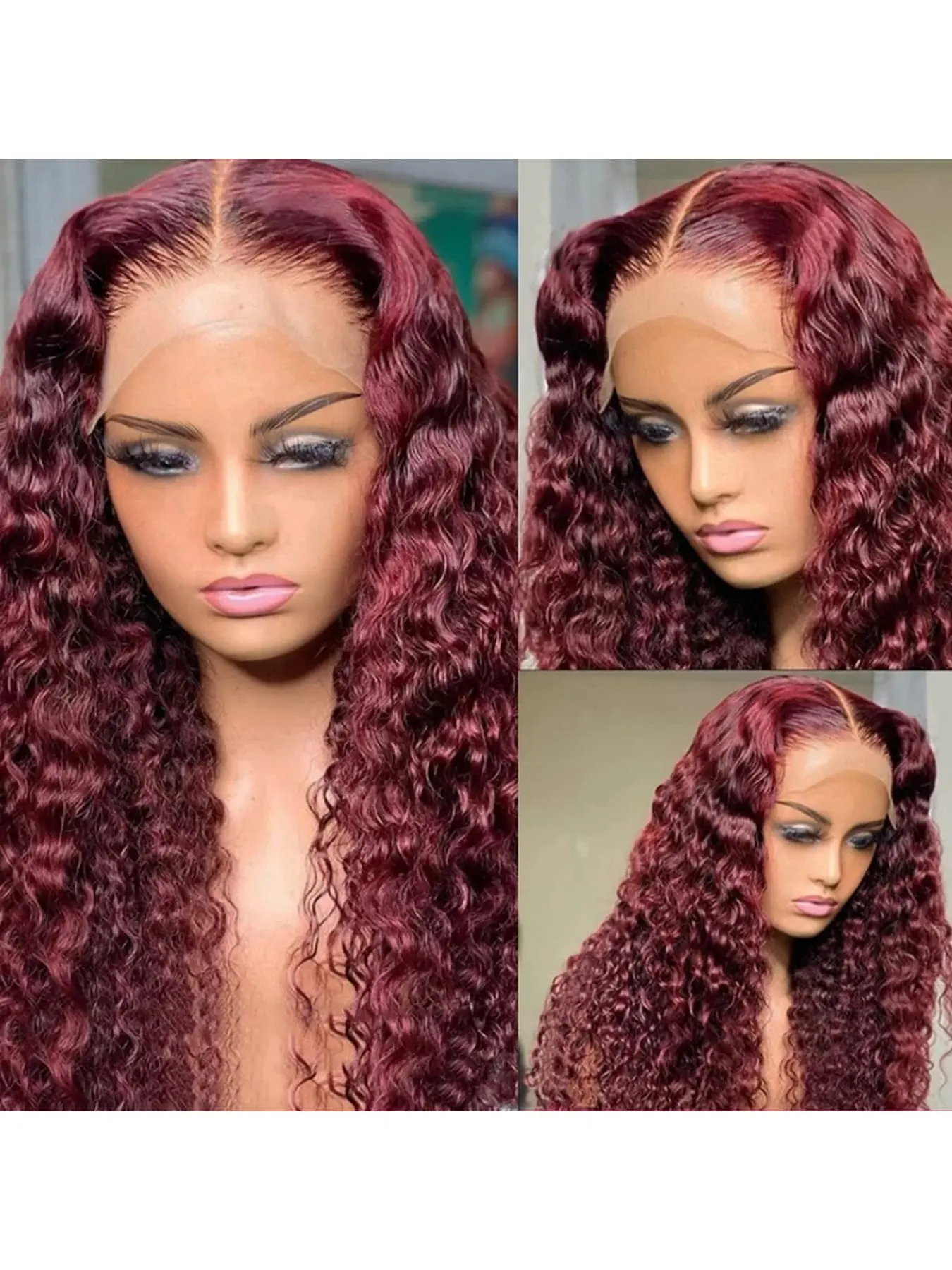 13x6 Deep Wave Lace Front Wig Human Hair Pre Plucked Brazilian Virgin Hair Glueless 30 Inch Long Curly Wig for Women Black