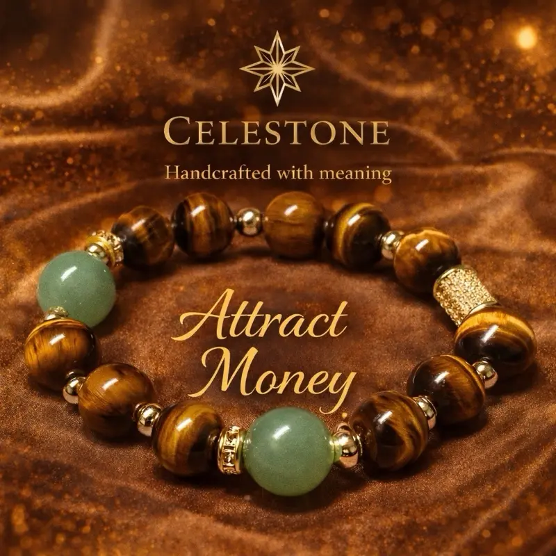 Tiger’s Eye, treasured since ancient Egypt for protection and courage, was worn by warriors and royalty to attract strength, confidence, and prosperity. Paired with Aventurine—known as the “Stone of Opportunity,” long believed to bring luck and financial success—this bracelet becomes a magnet for abundance.