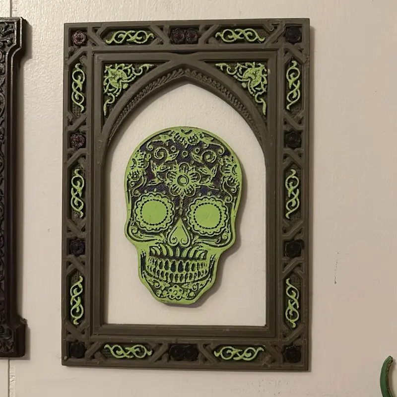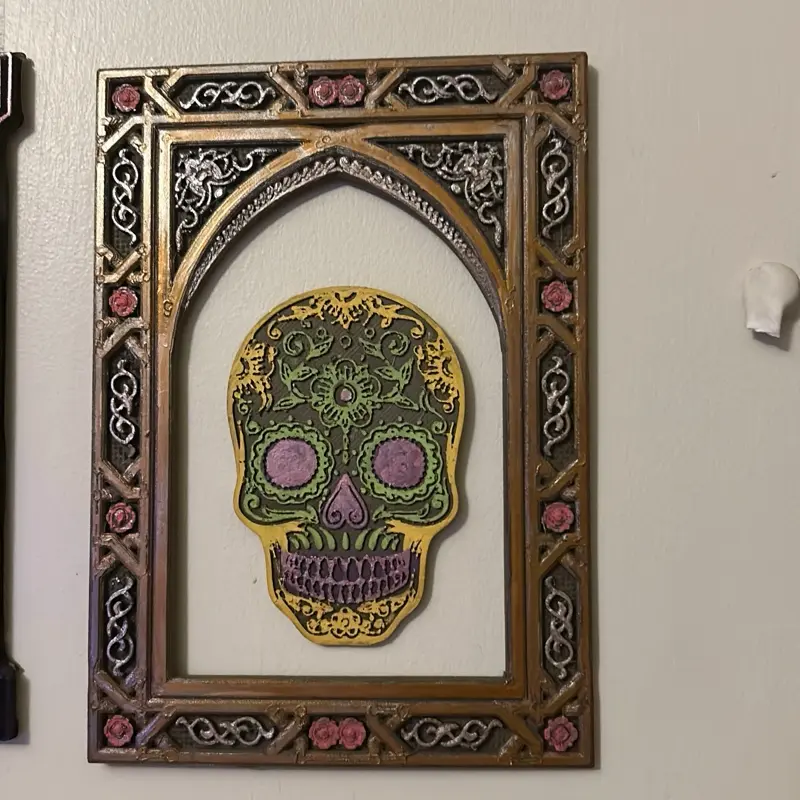 This hand-painted Gothic Arch Skull Frame is a striking piece of cathedral wall decor. Perfect for adding a touch of gothic charm to any room. The intricate design and skull motif create a captivating focal point. Ideal for those who appreciate unique, handcrafted art.