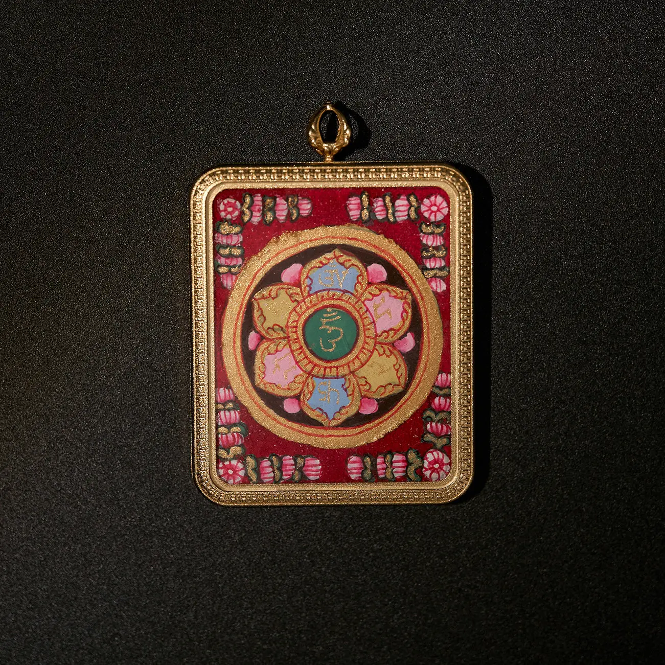 ·Awe-Inspiring Power (Side B: Vajrapani Mantra Mandala): The core features a lotus mandala and the seed syllable of Vajrapani, symbolizing indomitable will and the power to overcome obstacles. The red background with gold lines creates a strong visual impact, designed to help the wearer enhance focus and build a solid psychological shield amidst complex changes.