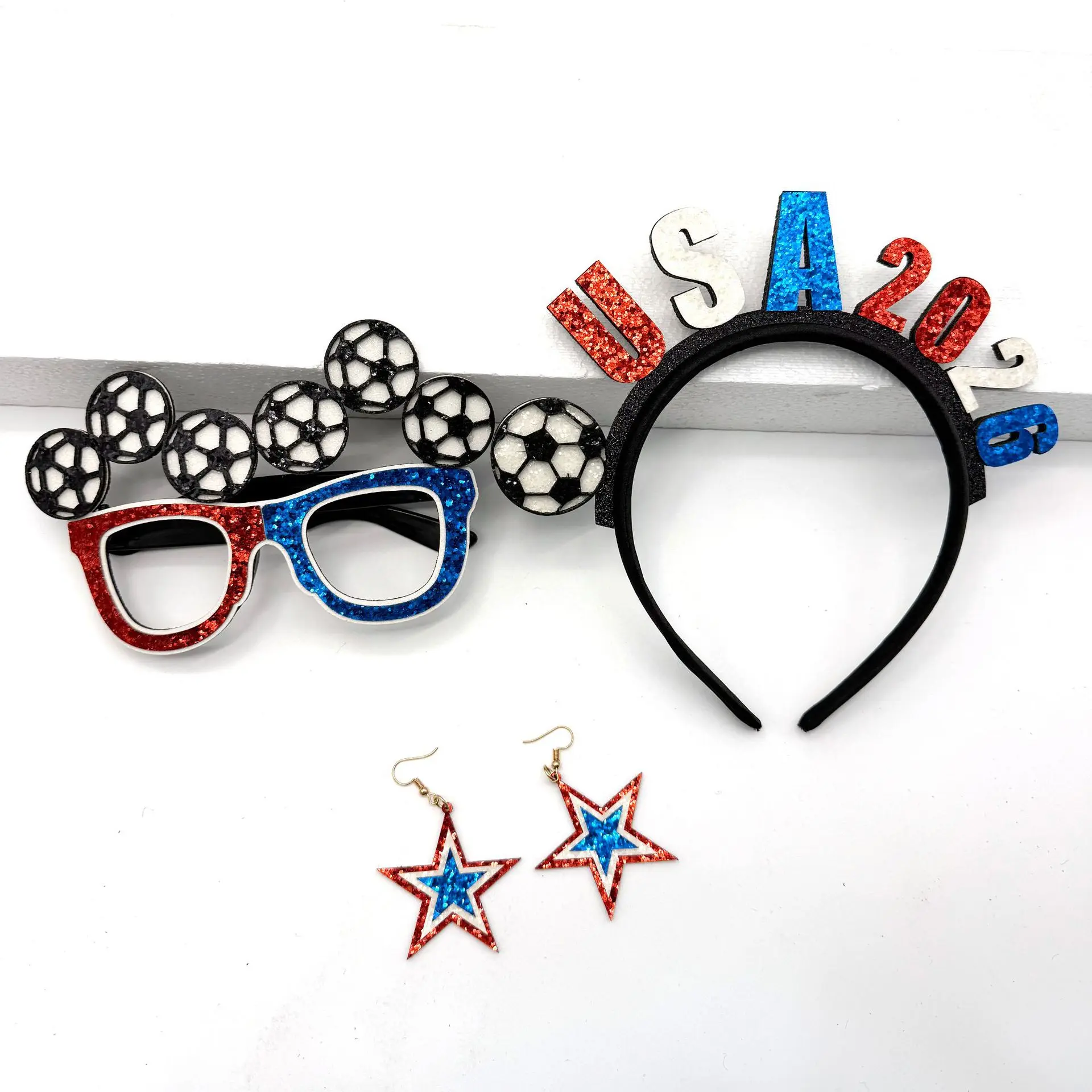 USA Fan'S Three-Piece Set For The World Cup In Mexico And Canada: Headband, Glasses, And Earrings For Party Cheer And Photo Props