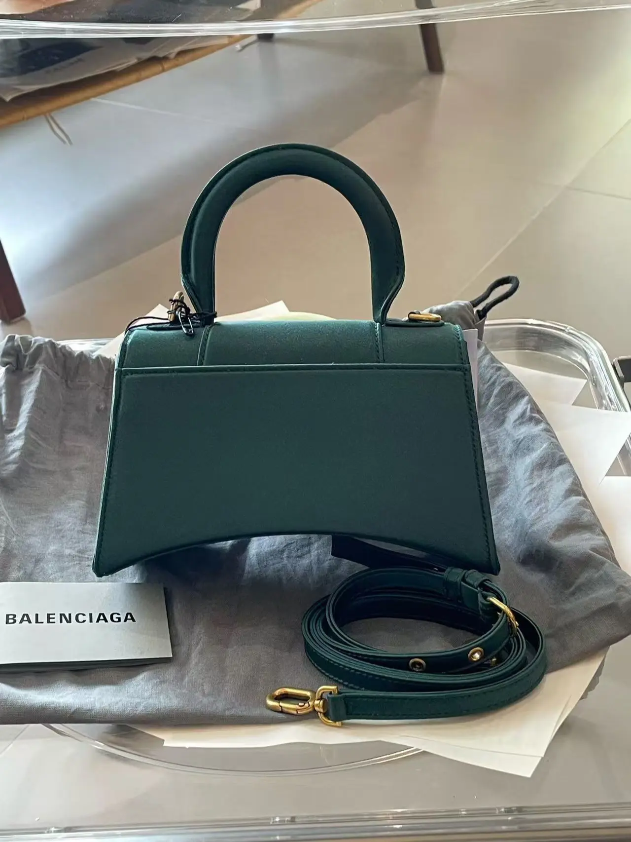 Pre-owned Balenciaga Hourglass Bag XS (99% New) Material: Satin face, Forest Green, Gold tone “B” Logo Closure