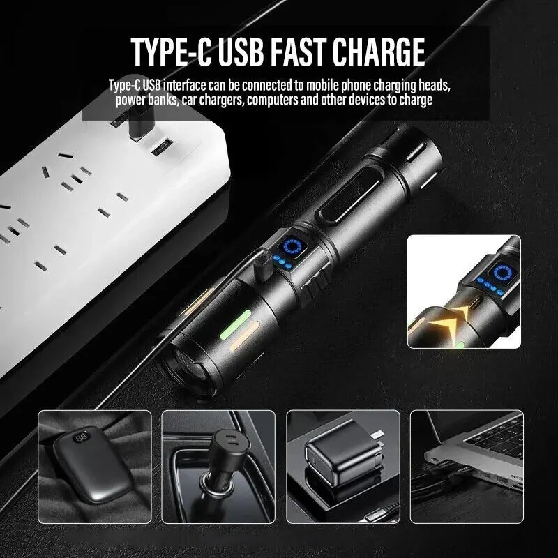 This flashlight is rechargeable- all you have to do is plug the USB Cable into it and it will recharge. You don't have to go buy batteries for it. The flashlight is SO powerful, we have sold many many types, but this is by far the brightest of all. Very very powerful and bright.