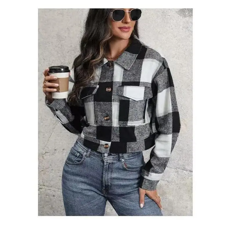 Length:Short Length Belt:No Sleeve Length:Long Sleeve Sleeve Type:Regular Sleeve Pattern:Plaid Sheer:No Fabric:Slight Stretch Placket Type:Placket Placket:Single Breasted Collar Style:Lapel Type:Jacket Contour:Slim Season:All-season Operation Instruction:Machine wash or professional dry clean Style:Casual Occasion:Weekend Casual Fit Type:Skinny Material:Polyester Printing Type:No Printing Composition:100% Polyester Weaving Method:Woven Item ID:QJ257839 Origin:Anhui,China
