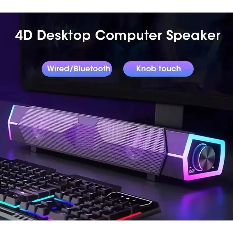 Bluetooth 5.0 and Wired Computer Soundbar Speakers with 4D Surround Sound Stereo and Subwoofer for Laptop PC Wireless Microphone Karaoke Speaker clip on anti-scratch travel keychain home office outdoor travel quran durable headphone