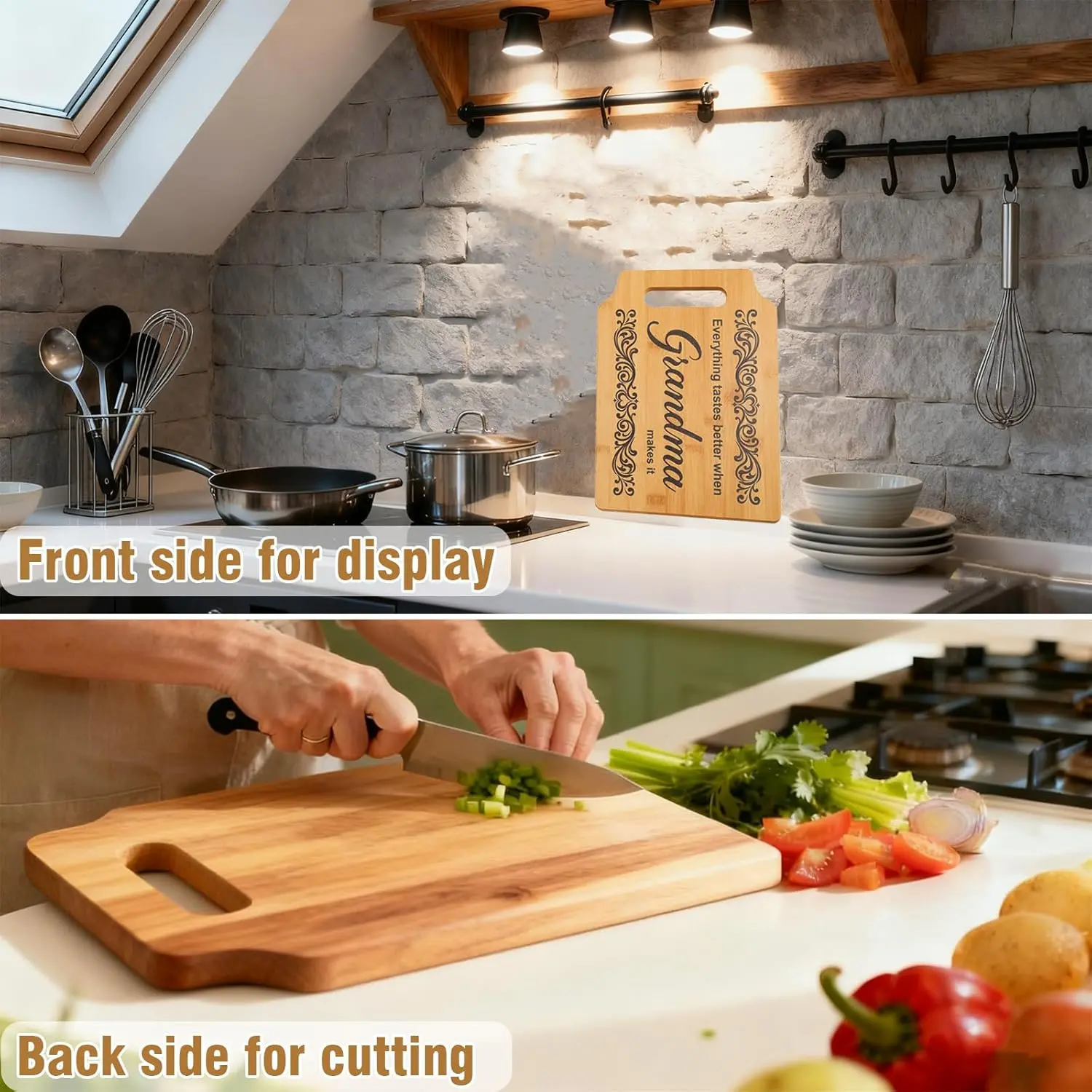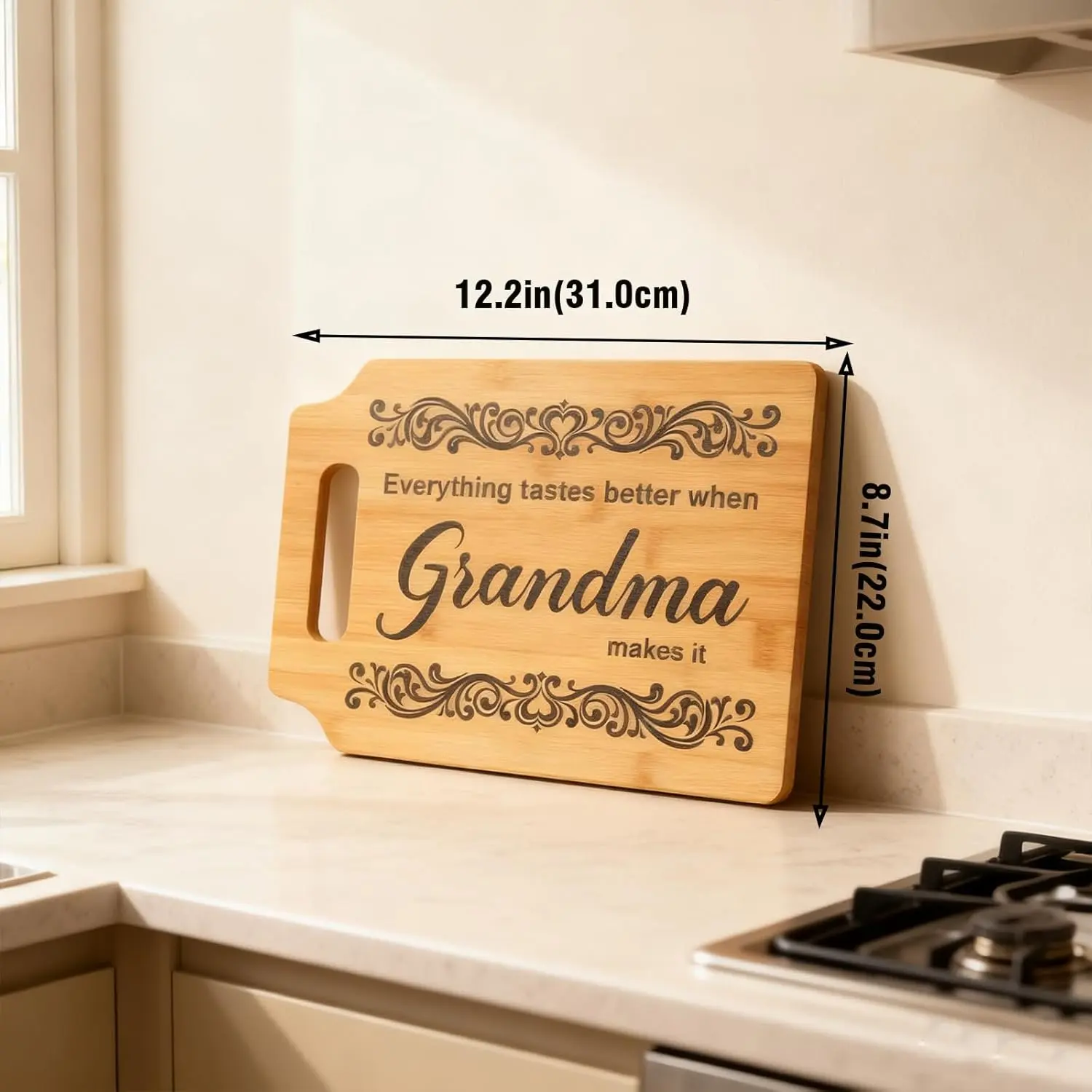 【 Functional & Charming Kitchen Decor】Perfect for chopping, serving, or simply displaying, this grandma cutting board adds warmth and love to any kitchen. Beautiful on countertops, shelves, or as wall decor.