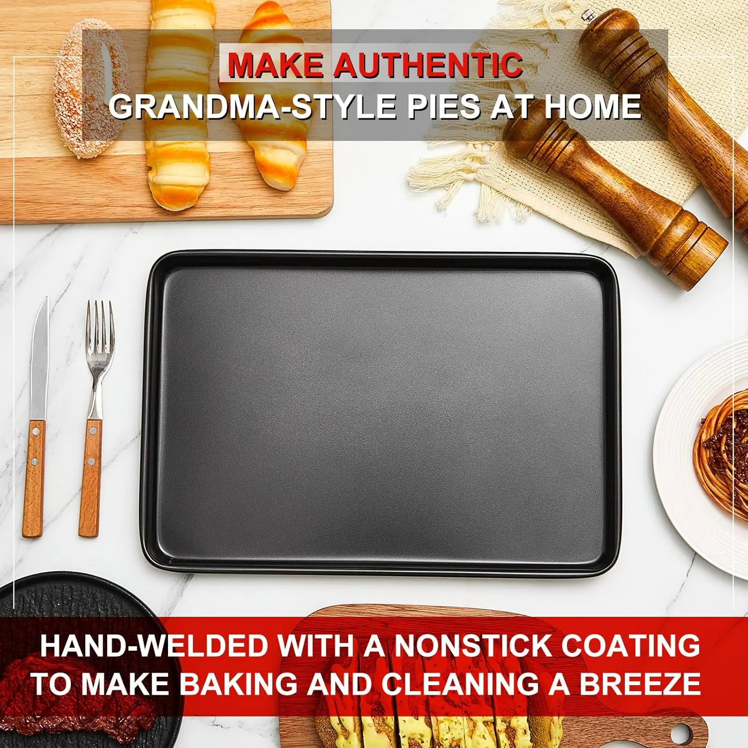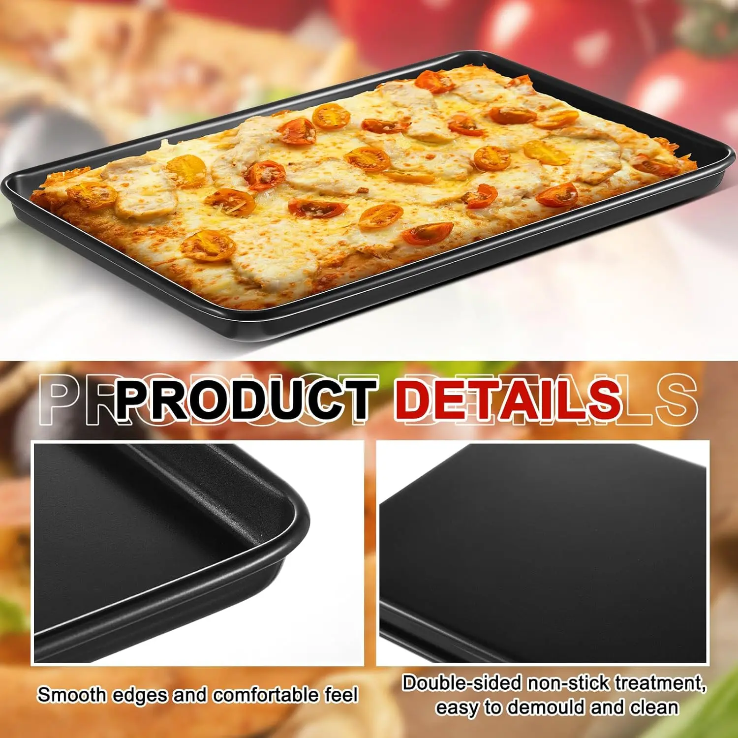 2 Pcs 17 Inch Grandma Style Pizza Pan Hard Rectangular Black Non Stick Sicilian Style Carbon Steel Pizza Pan Dish Pre Seasoned Bakeware Kitchenware