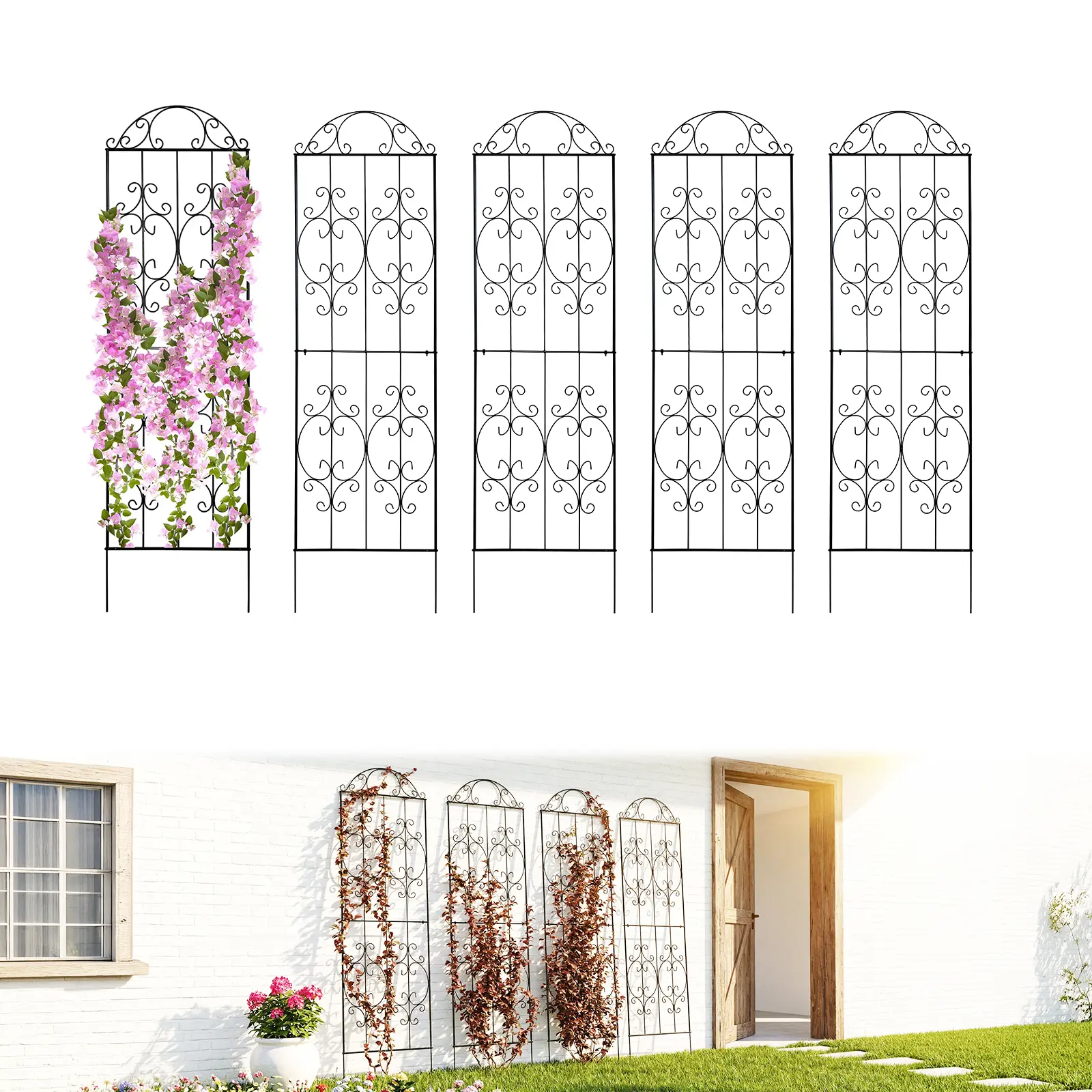 ·【Attractive Design】Whether your garden style is modern and minimalist or classical and elegant, this trellis complements it perfectly, becoming a beautiful focal point in your garden. The elegant black finish enhances the overall aesthetic of the trellis and creates a contrast with the colors of various plants, making your garden more vibrant and colorful.