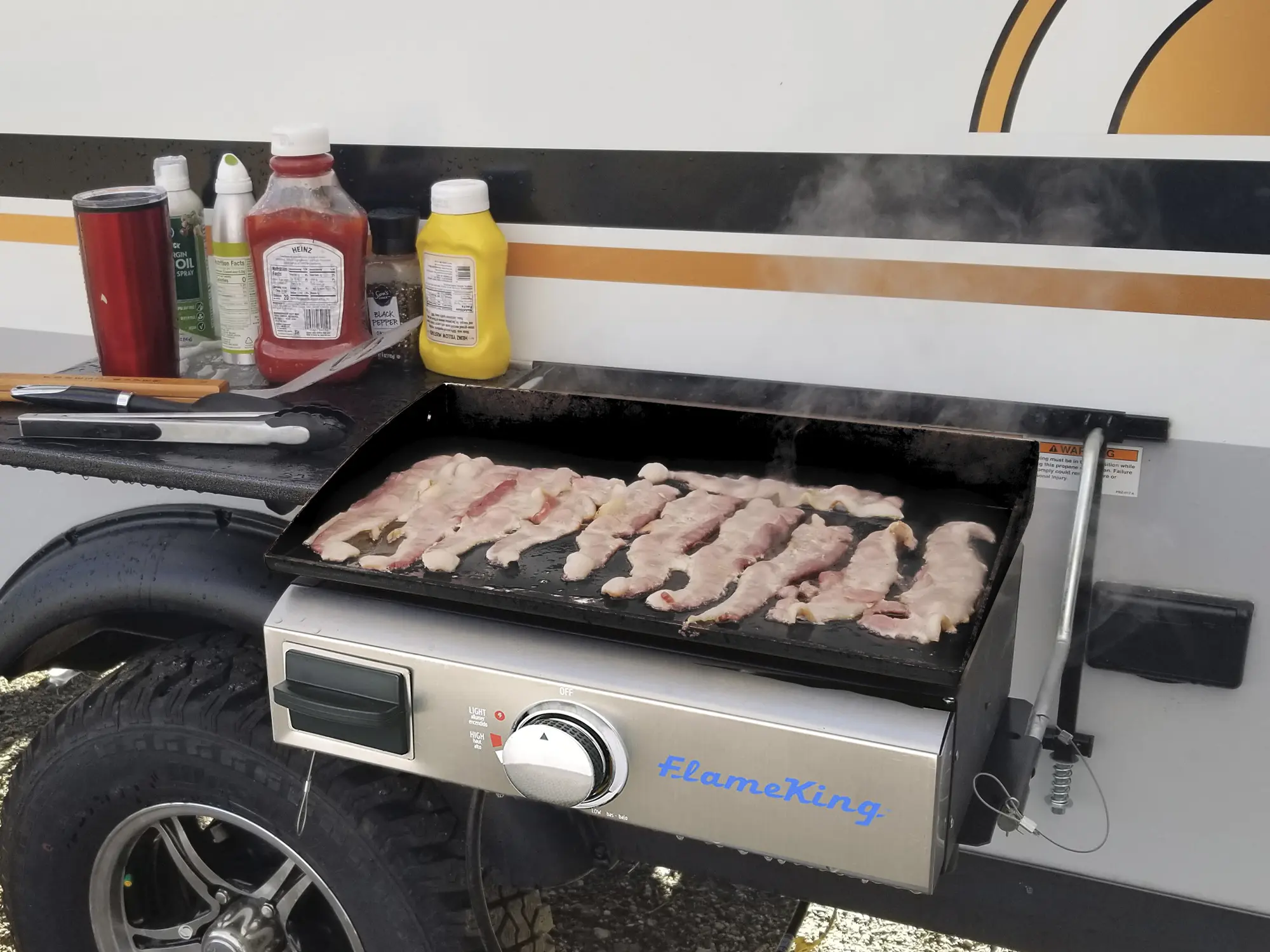 ·RV/TRAILER COMPATIBLE - Flame King’s Griddle station is ready to be mounted to your RV Pull Out Outside Kitchen.