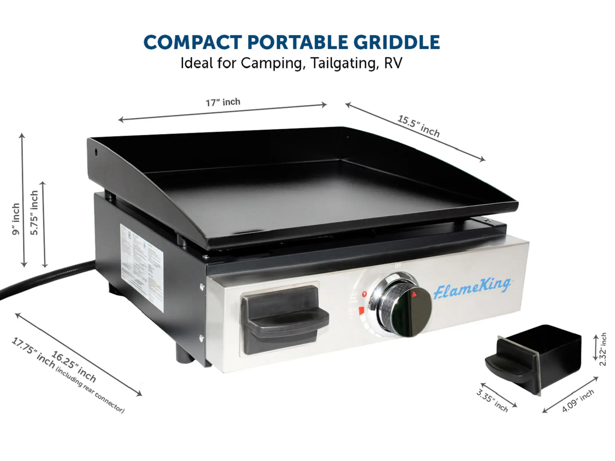 ·COMPLETE GRILLING STATION - This incredibly convenient motorhome compatible gas griddle w/ 12,000 BTU includes an adjustable flame controller