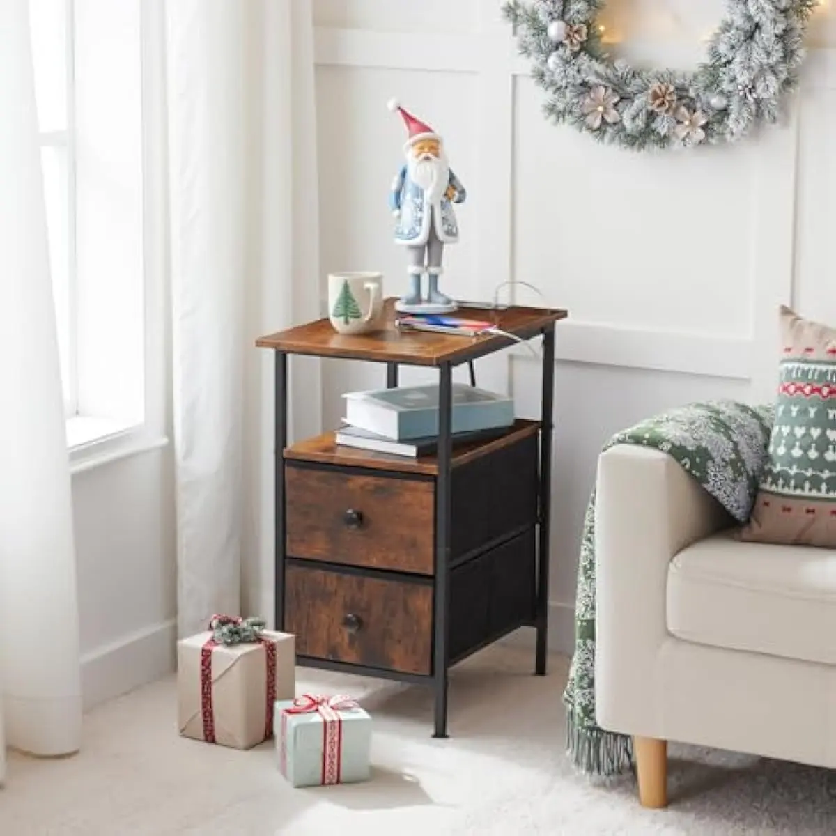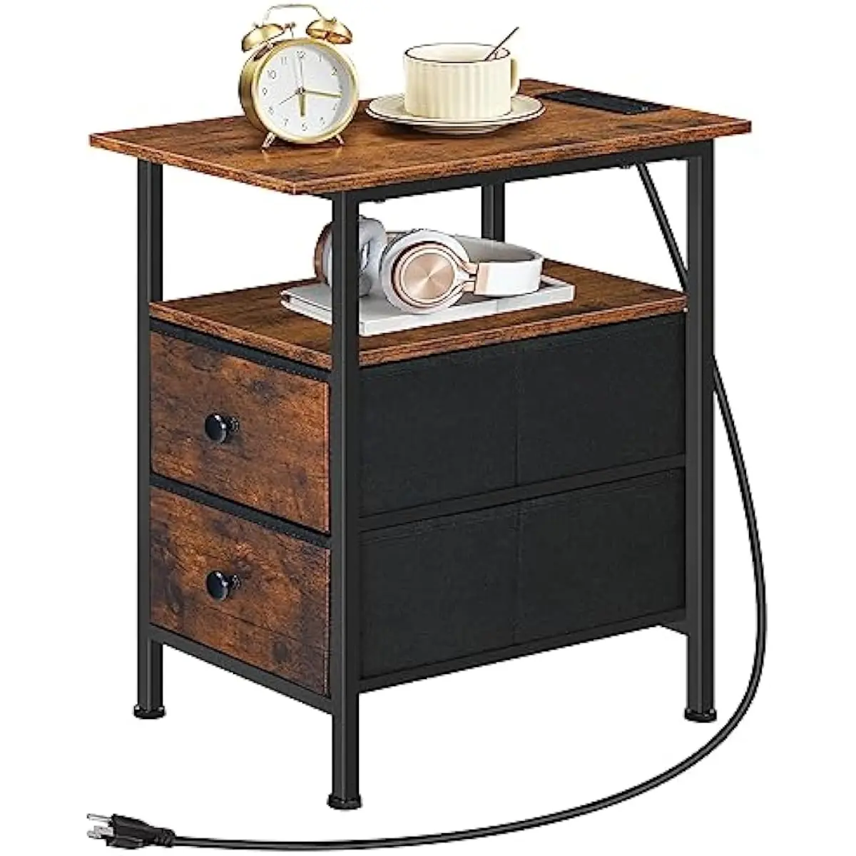 No place for snacks, remote control, magazines in the living room? Want to charge your phone before going to bed? HOOBRO side table with charging station solves your worries. With this rustic side table with large drawers, you not only have private storage, but also open space to keep everything at your fingertips.